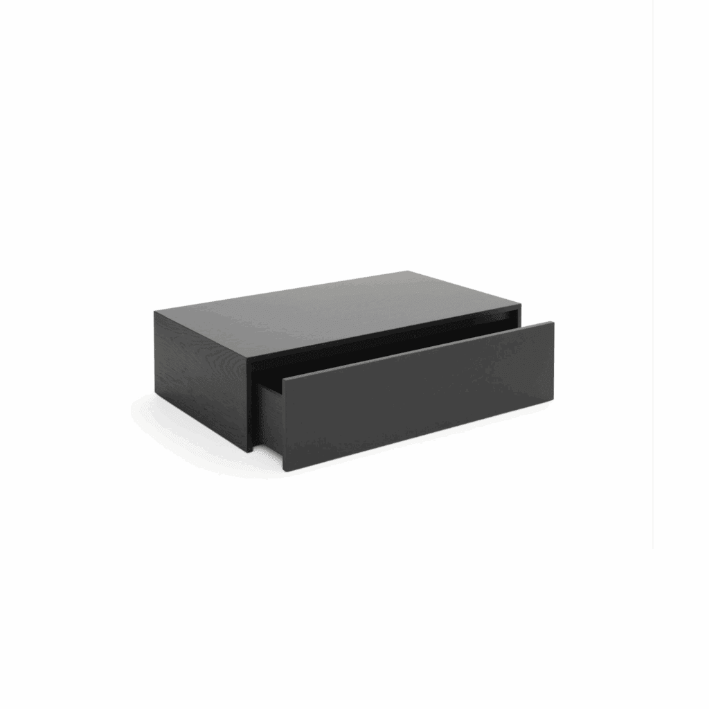 MASS COFFEE TABLE, HIGH W. DRAWER, BLACK STAINED OAK