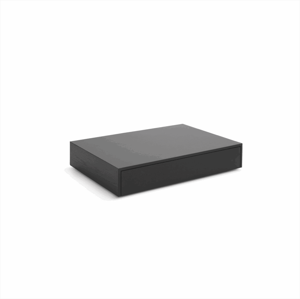 MASS COFFEE TABLE, WIDE W. DRAWER, BLACK STAINED OAK