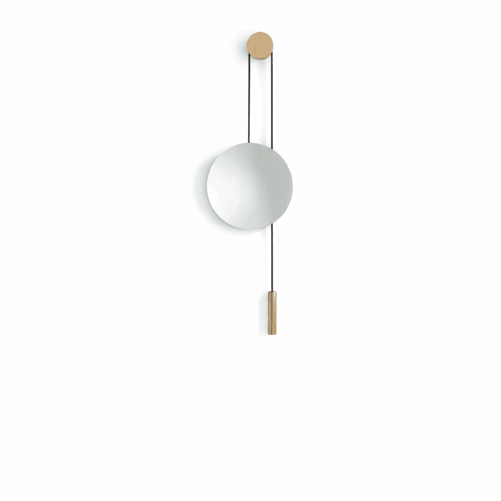 RISE AND SHINE MIRROR, NATURAL OAK W. BRASS WEIGHT