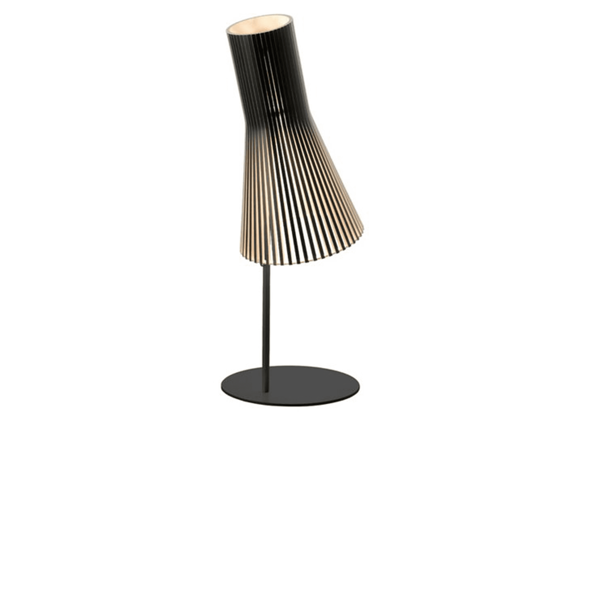 Secto 4220 is an elegant table lamp with a slatted, wooden shade that fills the space with gentle light. The shade is accompanied by a sleek stem and round base plate.