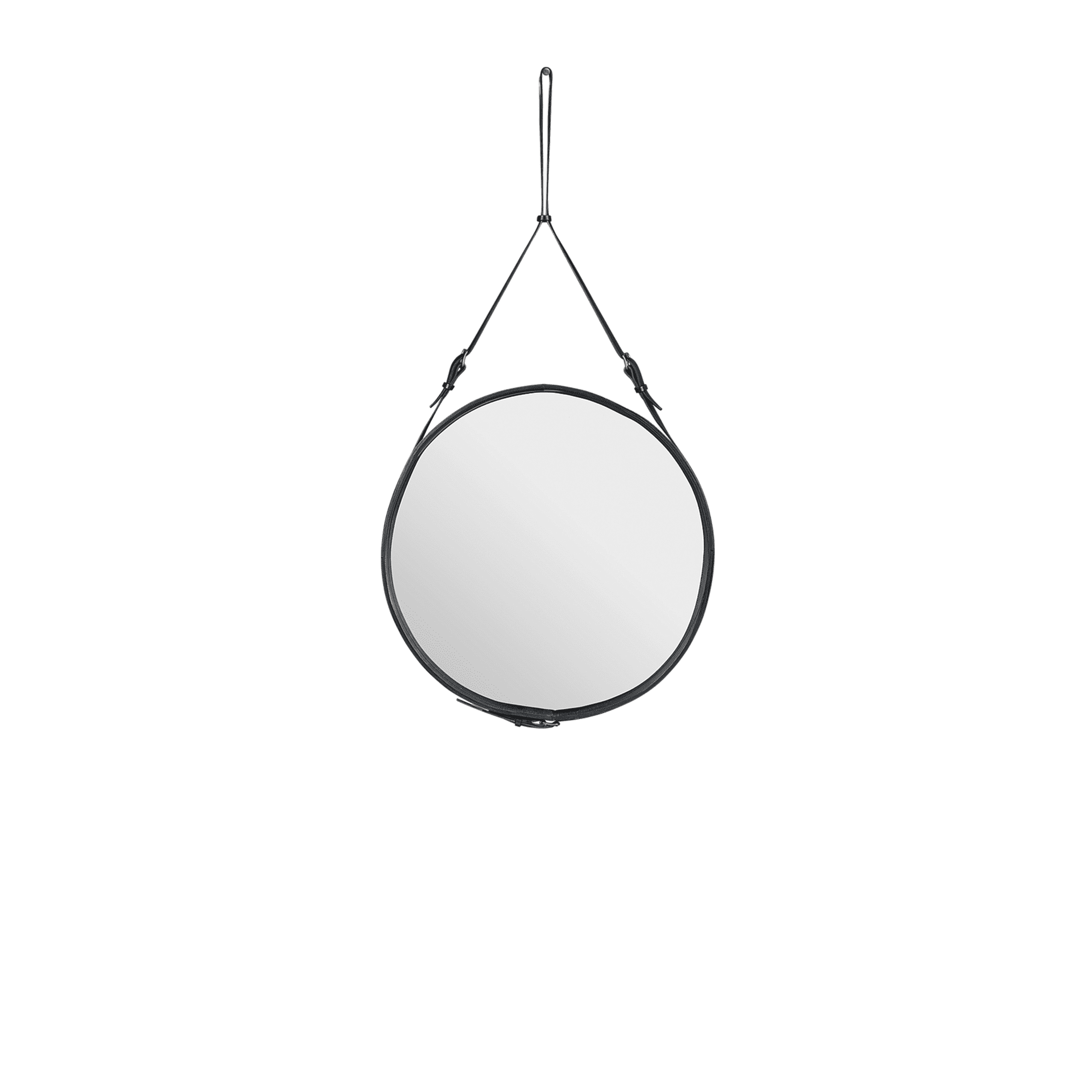 In 1950, Jacques Adnet formed a partnership with a famous French fashion house, where he developed a collection of discreet yet voluptuous leather-covered furniture and interior accessories. Known for being an innovative thinker, Adnet was one of the first designers to combine leather with glass. Accordingly, he designed the elegant, distinctive round leather mirror with equestrian inspired detailing – the Adnet Wall Mirror Circular. Besides the remarkable leather and burnished brass details, the mirror in three sizes is also unique as the strap holding the mirror is in direct proportion to the dimension of it.The timeless Adnet Wall Mirror Circular adds a sculptural value to any hallway, bathroom or living room and the three sizes can advantageously be combined to create an outstanding expression.