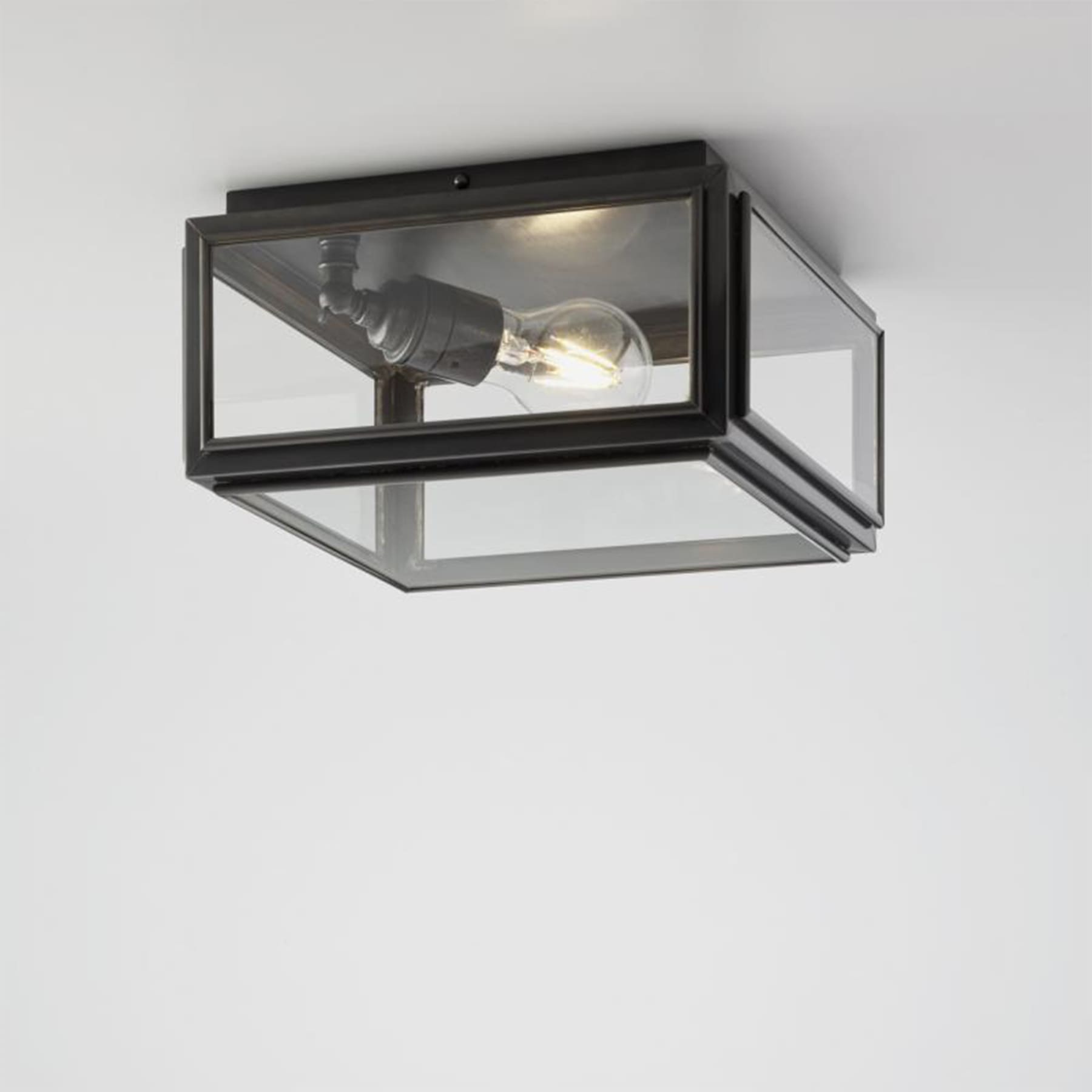 Ceiling light in brass with outside fitted clear or frosted glass and spring closure.