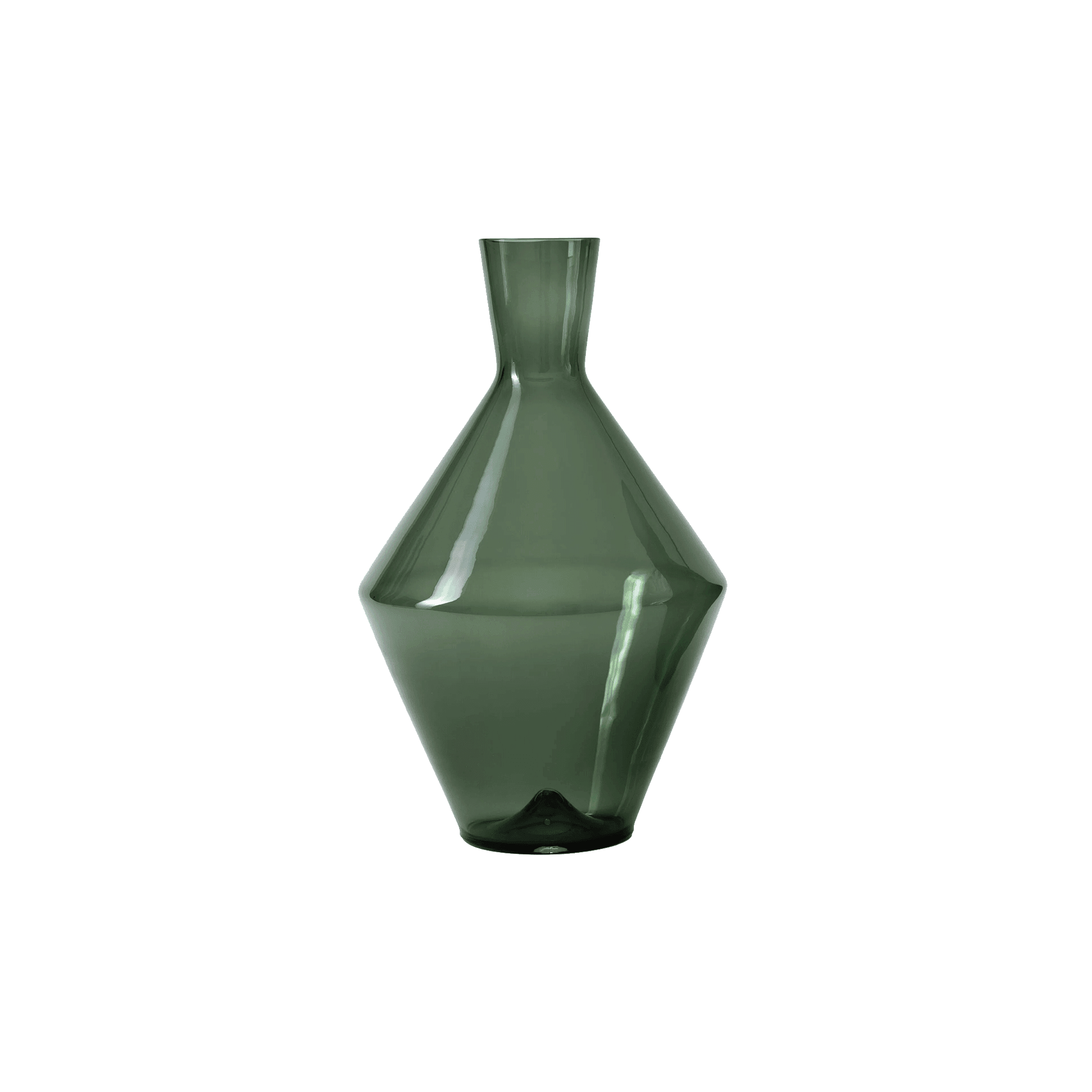 The angular shape of the Diamond Decanter is both playful and chic, with a mid-century charm. Carefully proportioned, it is both beautiful and functional. Available in three vibrant, transparent glass colors, with both frosted and standard finishes. Each piece is individually handblown from the finest glass. Subtle variations in color density are an intentional expression of its handmade origins.