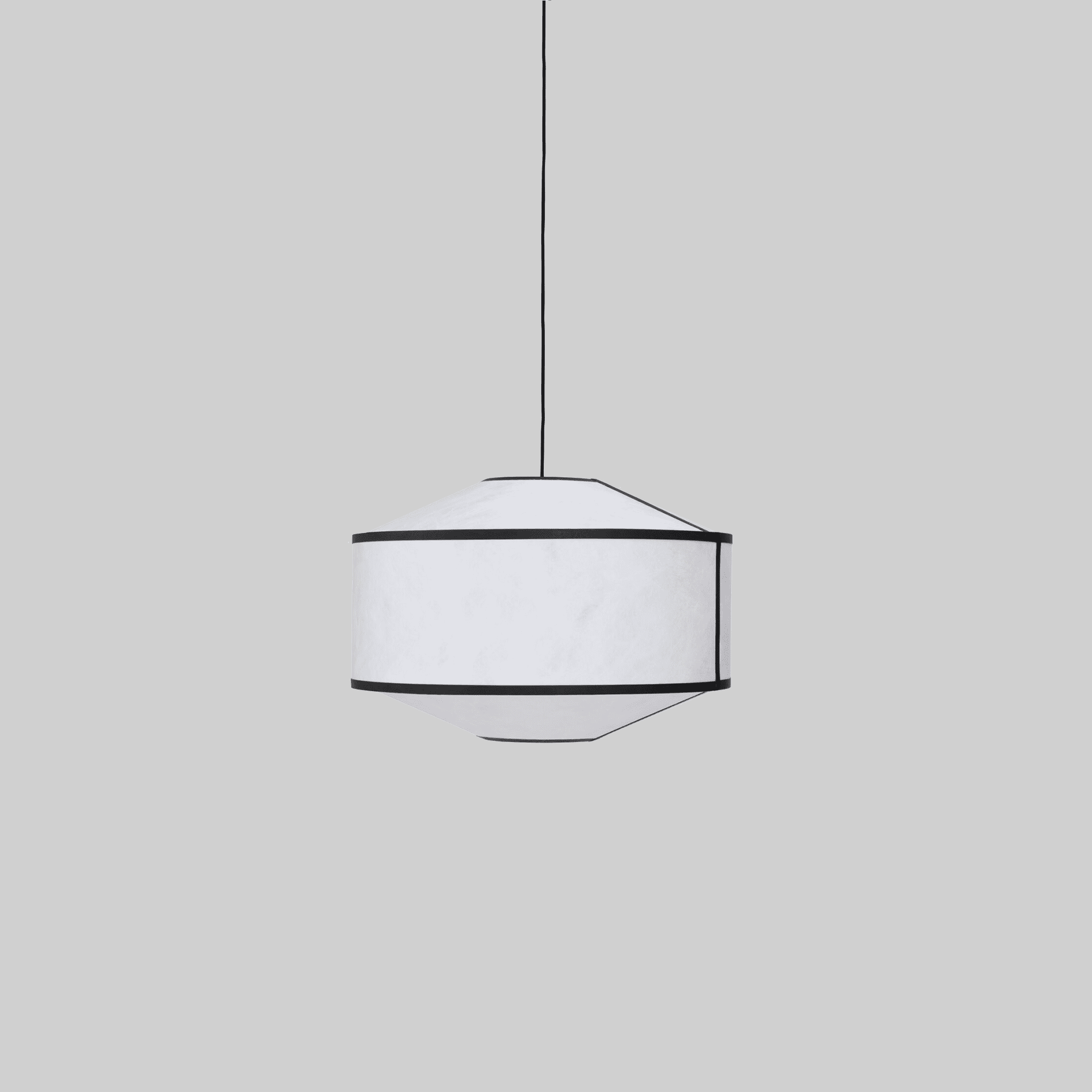 Kite is a work of proportion and abstraction, blending pure and geometric silhouettes with smooth, textured materiality. The same structural elements are adapted into three different sizes, each echoing the other like a tale that alters subtly with each retelling. Delicate taping contours the silhouettes, a technical refinement that enriches depth and contrast. Whether displayed together or separately, the Kite Pendant Lamps serve as a luminous sculptural element.