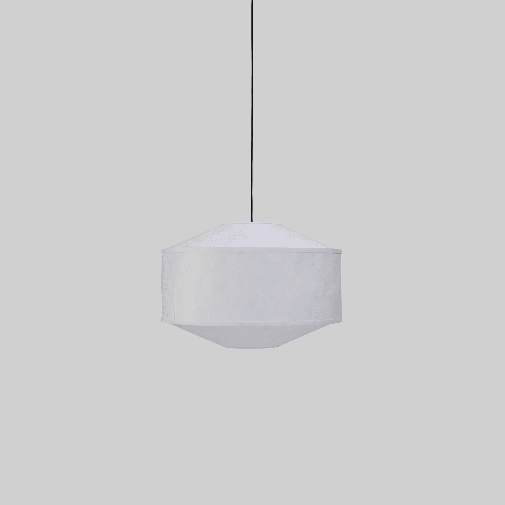 Kite is a work of proportion and abstraction, blending pure and geometric silhouettes with smooth, textured materiality. The same structural elements are adapted into three different sizes, each echoing the other like a tale that alters subtly with each retelling. Delicate taping contours the silhouettes, a technical refinement that enriches depth and contrast. Whether displayed together or separately, the Kite Pendant Lamps serve as a luminous sculptural element.