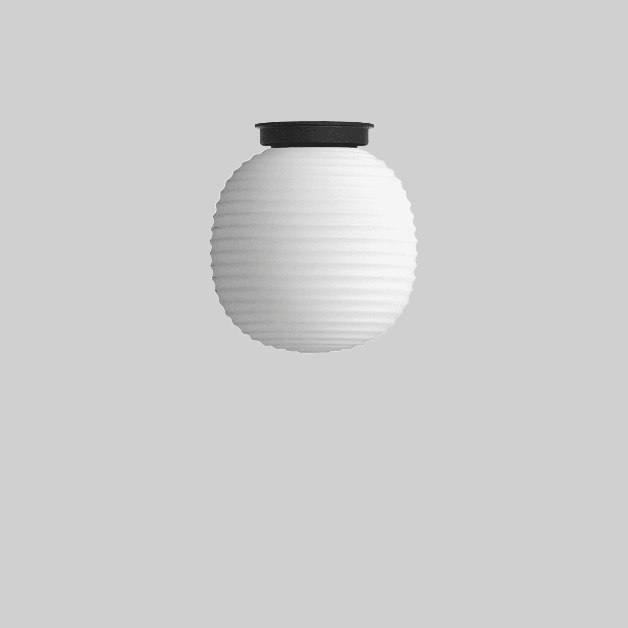Expanding into every aspect of the contemporary interior, the Lantern Wall Lamp and Lantern Globe (ceiling) Lamp complete this iconic series. Both lamps feature a simple black steel support and fixing that allows the soft illumination of the rippled glass globe to shine brightest. Inspired by traditional Chinese rice paper lanterns, these additions allow you to take the series into all corners of the home – from bedside to the entry, kitchen to the reading room.
