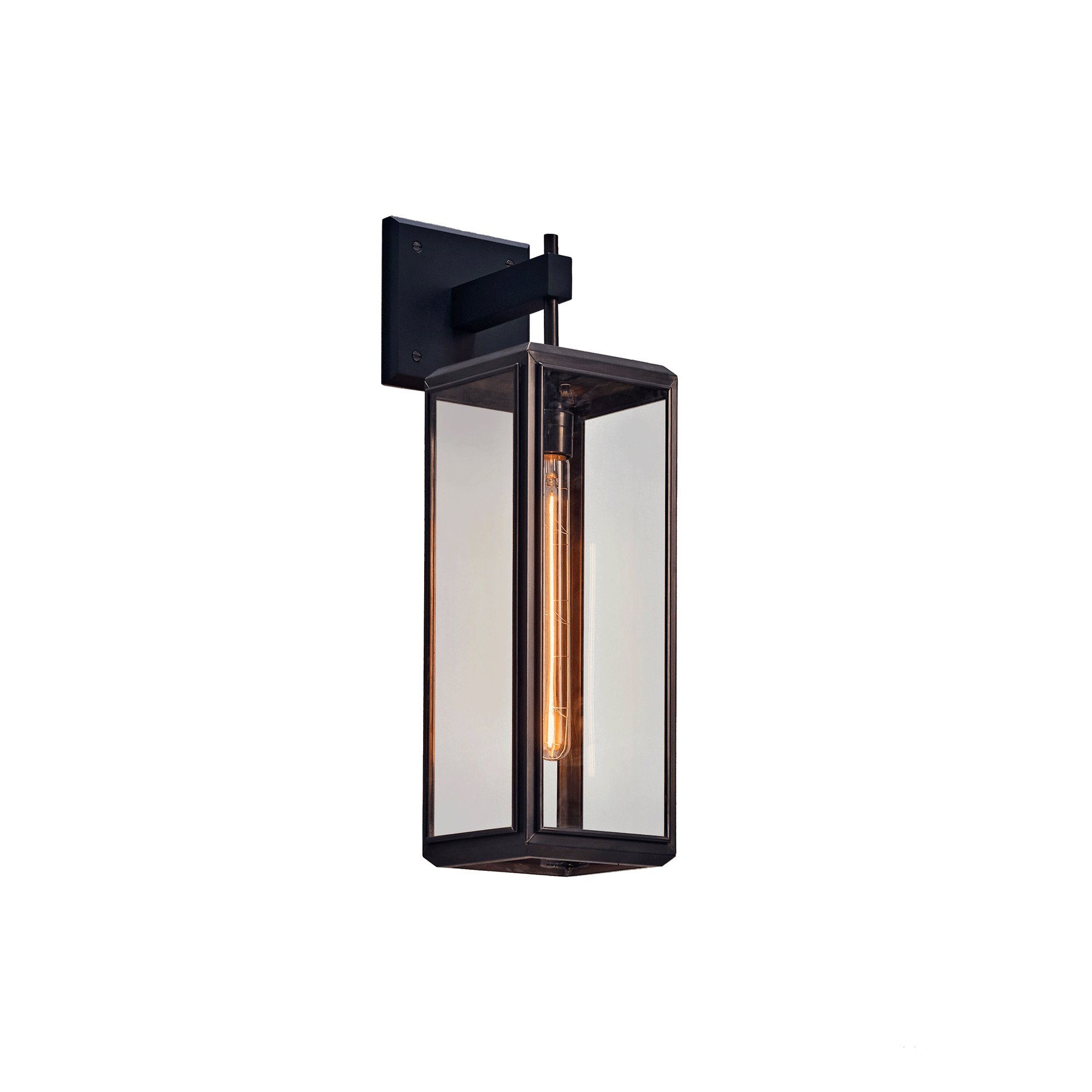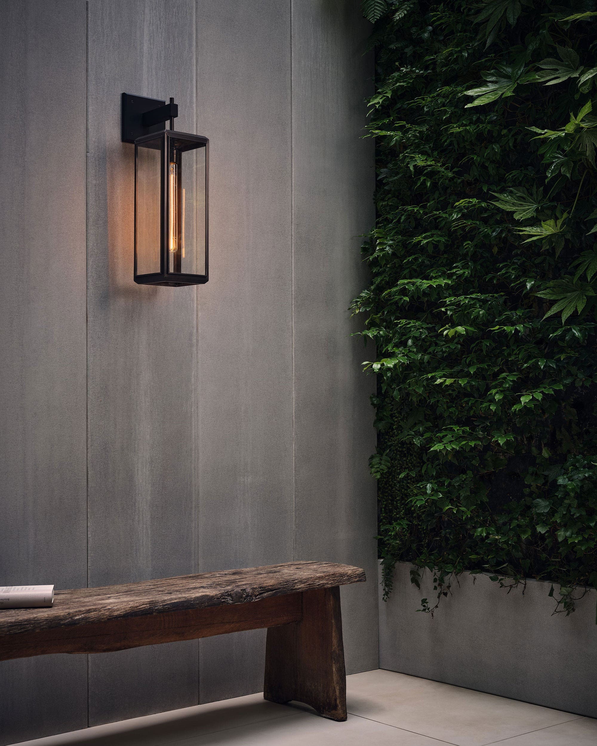 The Lilac Tall Wall Lantern, meticulously crafted from sheet brass, offers IP43-rated illumination for both indoor and outdoor settings.