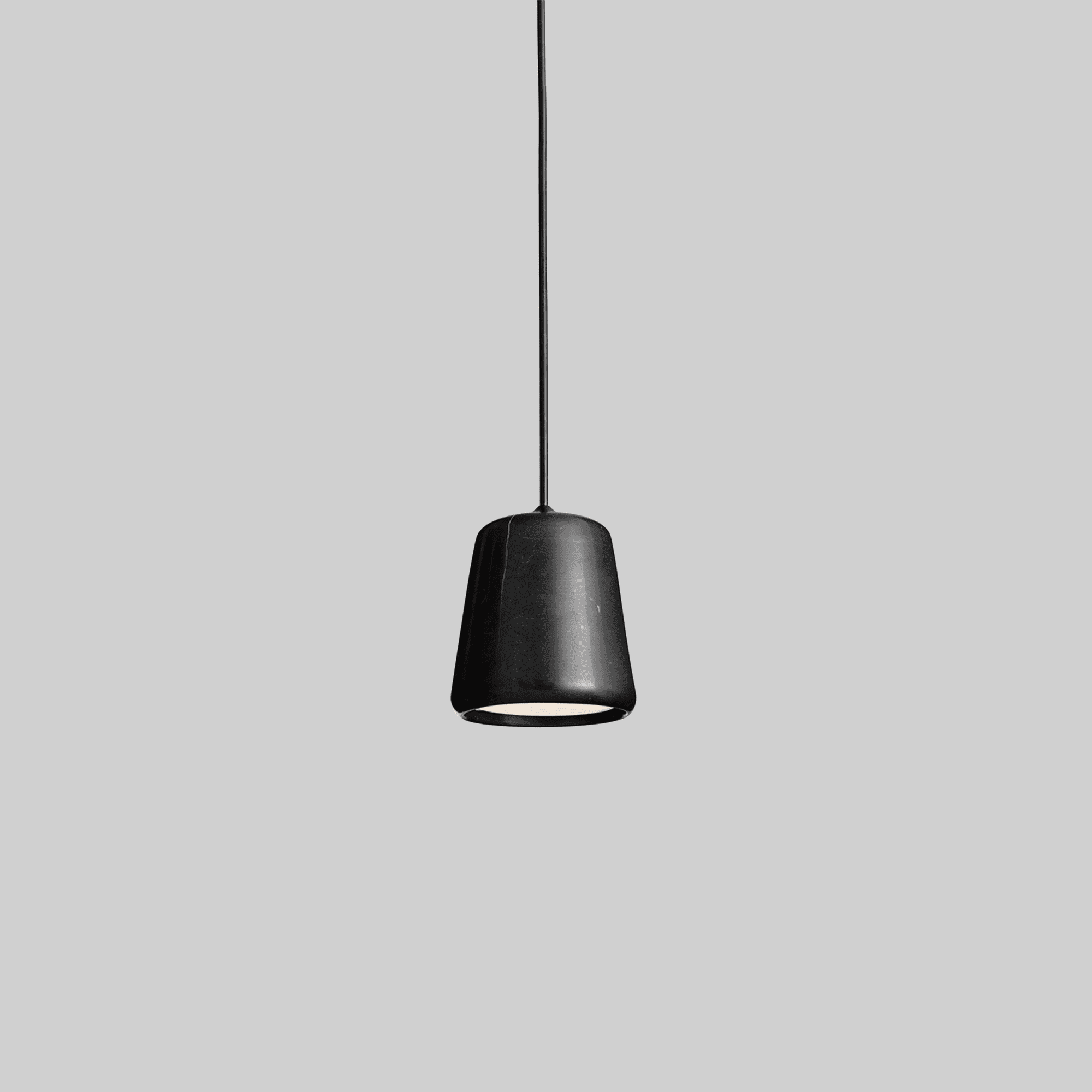 The Material Pendant lamp highlights the power of simplicity in form. Through this simplicity, it can become a standout piece within a room, or be used to complement those around it. From the warmth of oak and cork, to the roughness of concrete and marble, the richness of terracotta, and the radiance of yellow steel, the Material Pendant offers a versatile addition to any space. The possibilities are endless. This version comes with a black PVC cord.