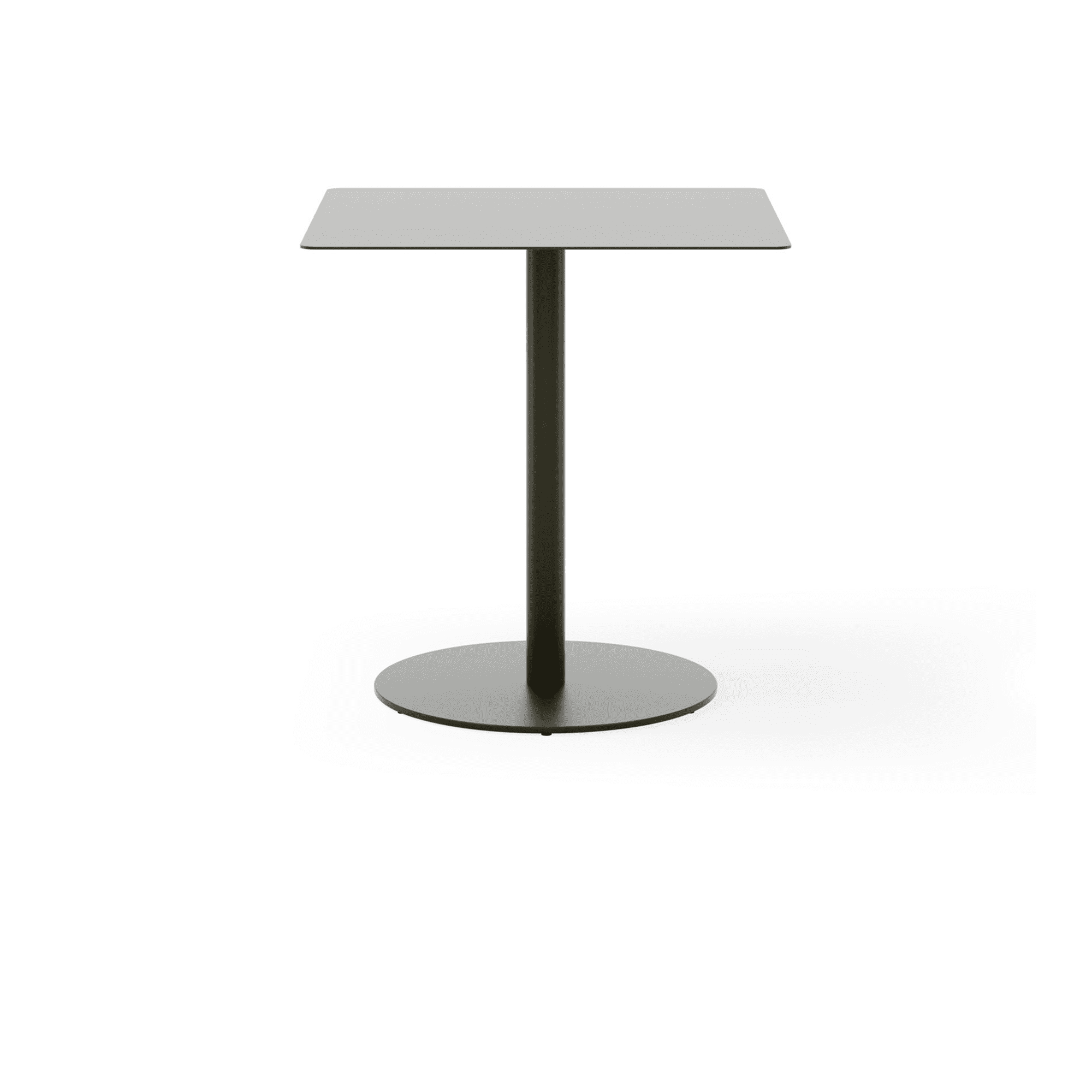 The understated, monochromatic appearance of the May family is detailed without being technical. The chair leads the way for the defining interactions of the design in which a delicate surface meets a bold frame – two opposing elements which somehow comfortably coexist. As the light steel sheet tightly wraps itself around the chunky steel frame, it forms a strong and comfortable seat, slightly curved so that it gently hugs the body. A slit through the seat allows for water drainage and adds a subtle detail to the otherwise uniform surface. Mirrored in the tables, it creates a repetition of lines that brings lightness, direction, and unity to the family.