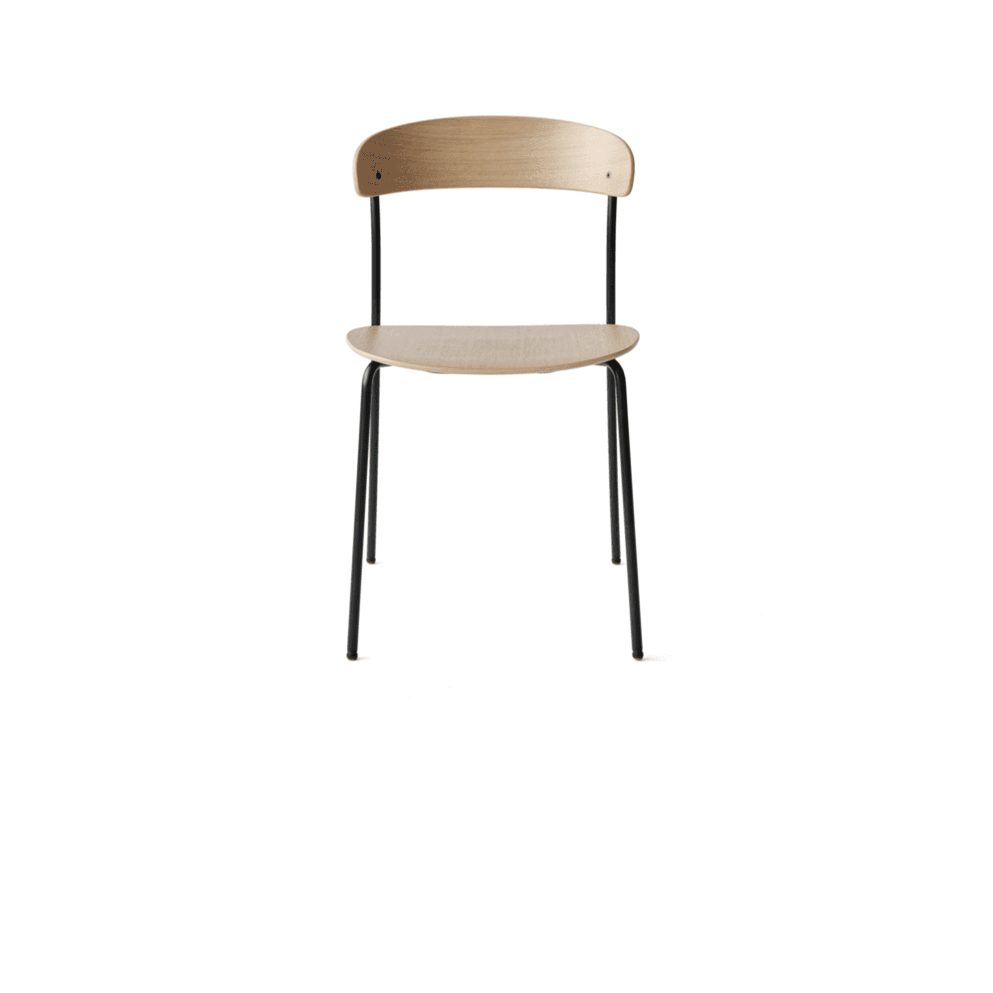 The Missing chair appears as if a simple line drawing has sprung into life. Sensual yet strong, the soft curve of each line creates a whimsy that is hard to describe. Straight lines have been softened, allowing the timber seat and back to appear as if floating above the thin steel frame. What remains are the bare essentials in our own interpretation of the humble cafe chair: light, stackable and durable, completed by a highly comfortable silhouette.