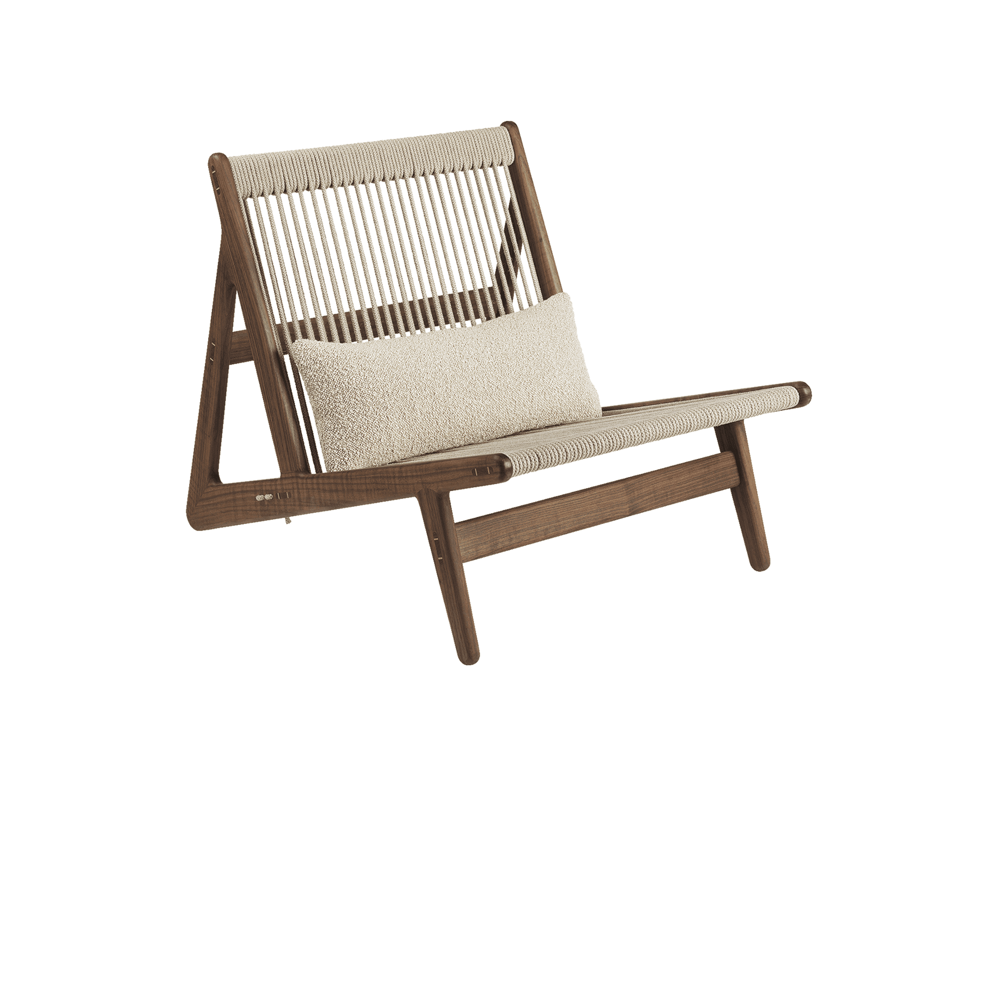 Beautifully honest, light in both weight and expression, new Danish talent Mathias Steen Rasmussen’s debut piece is a striking interplay of craftsmanship, comfort and sustainability.Originally conceived as a lounge chair that he could also use for meditation in his home, Rasmussen’s combination of wood and rope creates a simple, flexible chair that gives a sense of both floating and connection with the ground. The open triangle frame, available in either walnut or oak, has been constructed without using a single screw, while the 90 meters of hand-woven, natural linen cord that make the seat and backrest add a lightness to the design.The MR01 Initial Chair can give comfort all year round. The rope construction allows airflow in the warmer months, and simply adding a blanket or sheepskin makes it cozy all through winter. For added comfort in many sitting positions, a boucle wool covered pillow is included. The Initial chair can be placed alone or in pairs in the home, while it functions superbly in longer rows or clusters in hospitality settings. The simplicity of the MR01 Initial Chair’s design and materials ensure it a longevity and durability that are central to Rasmussen’s core philosophy.