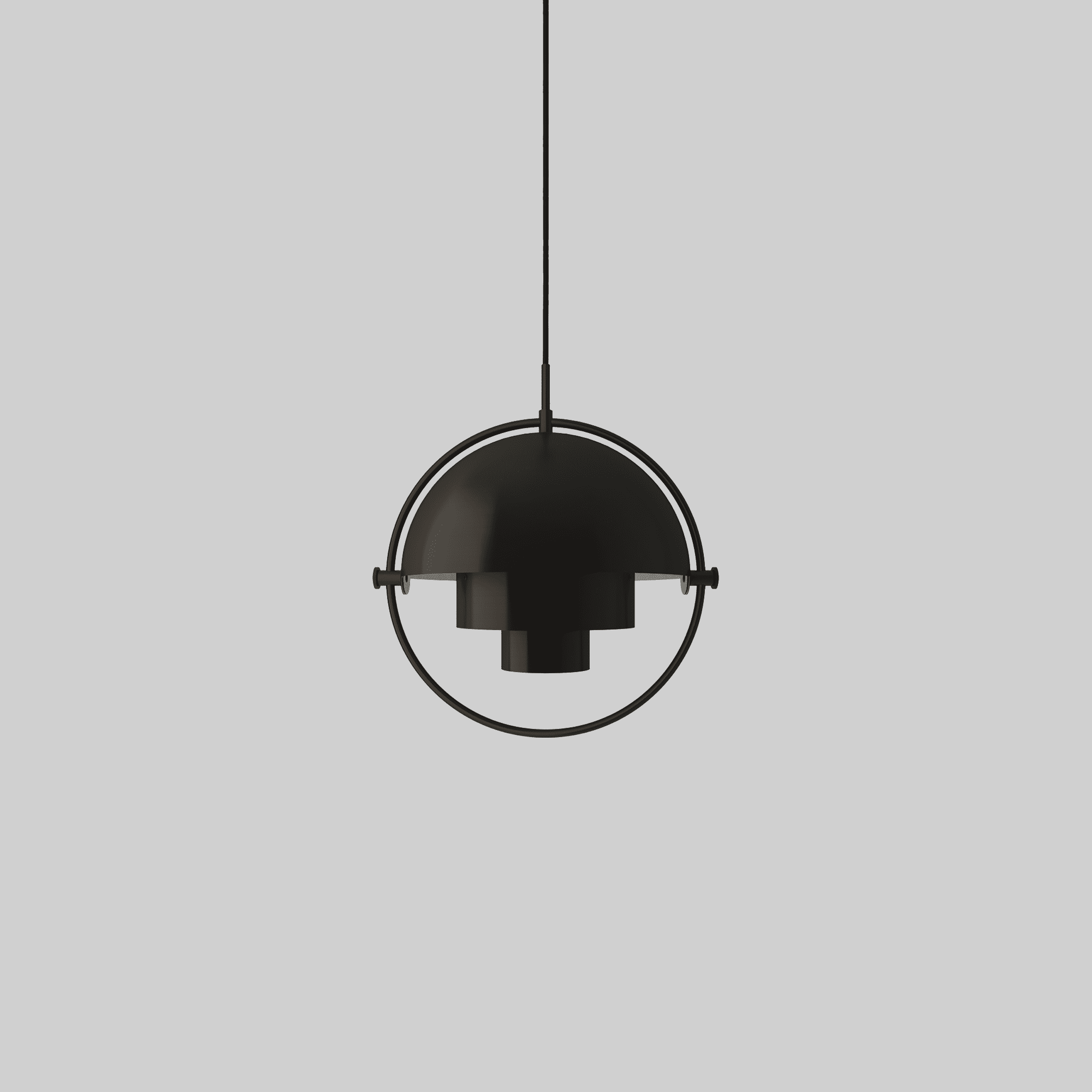 The Multi-Lite Pendant embraces the golden era of Danish design with its characteristic shape of two opposing outside, mobile shades that enable creating a personal installation and a wide range of lighting values in a room. By individually rotating the shades, the Multi-Lite Pendant can be transformed into multiple combinations where the light can be directed upwards, downwards or exude an asymmetrical art light. The Multi-Lite was first drawn in 1972 when Louis Weisdorf did an exception to his own design custom of using multiple repeating elements. Instead, it reflects his passion for diversity. Two cylindrical shapes lay the foundation of the lamp and a metal ring encompasses it and anchors the two quarter-spherical shades, which ultimately completes a picture of an iconic design with multiple purposes. The Multi-Lite Pendant has a timeless expression that fits into any domestic setting.