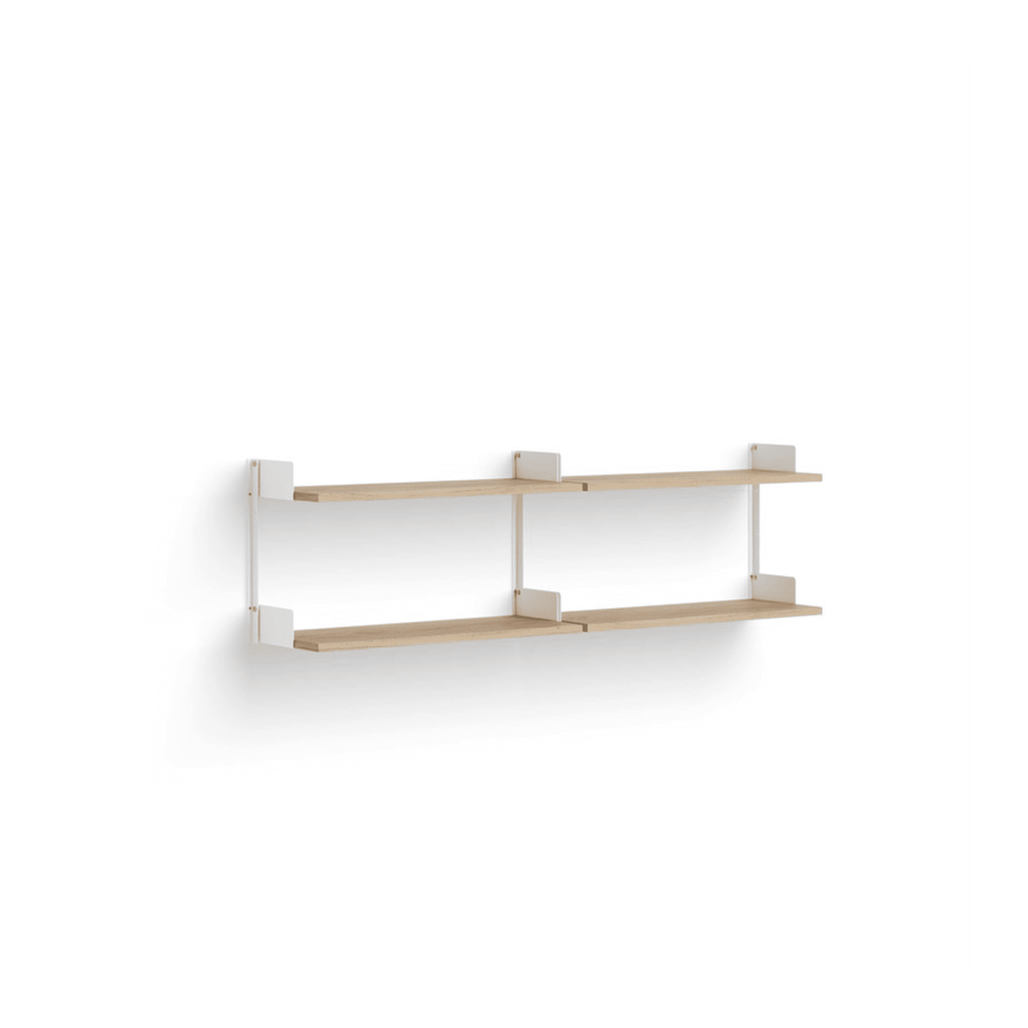 Sometimes the simplest pieces prove to be the most difficult to find, say, the quintessential wall shelf. With unDerstated Details and intelligible flexibility, the New Works shelving system aims to be just that. Designed to effortlessly blend into a variety of spaces, this simple shelving system continues New Works’ ongoing quest of creating elevated basics. Nothing is surplus and everything has been carefully attenDed to, like the angular profiles of the wall bars and the integrated bookends that keep your belongings in place. The shelves are neatly assembled with flat knurled screws in stainless steel, adding an honest yet refined Detail to the Design. A system that is meant to grow – in your home and in range – to accommodate various storage needs.