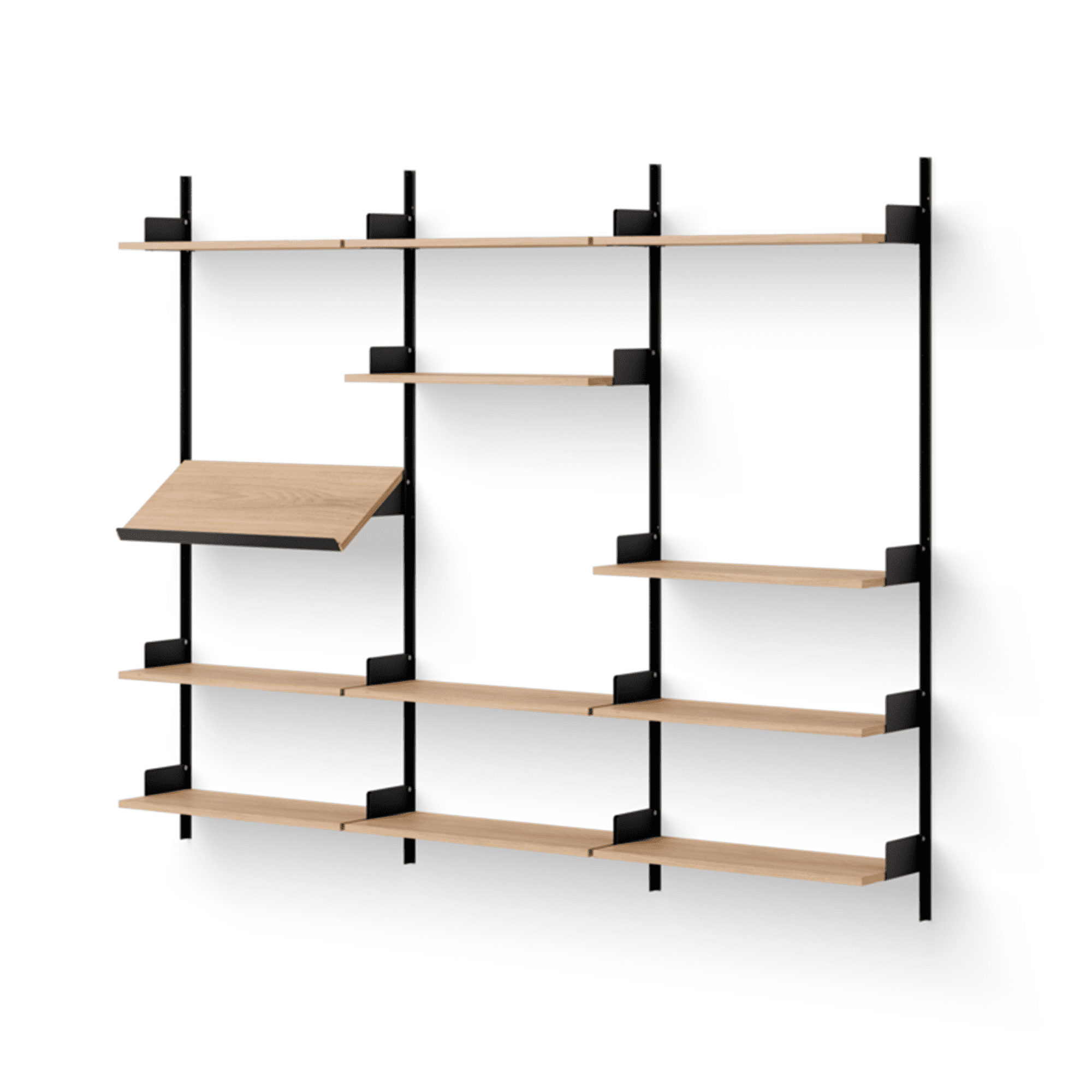 Sometimes the simplest pieces prove to be the most difficult to find, say, the quintessential wall shelf. With unDerstated Details and intelligible flexibility, the New Works shelving system aims to be just that. Designed to effortlessly blend into a variety of spaces, this simple shelving system continues New Works’ ongoing quest of creating elevated basics. Nothing is surplus and everything has been carefully attenDed to, like the angular profiles of the wall bars and the integrated bookends that keep your belongings in place. The shelves are neatly assembled with flat knurled screws in stainless steel, adding an honest yet refined Detail to the Design. A system that is meant to grow – in your home and in range – to accommodate various storage needs.