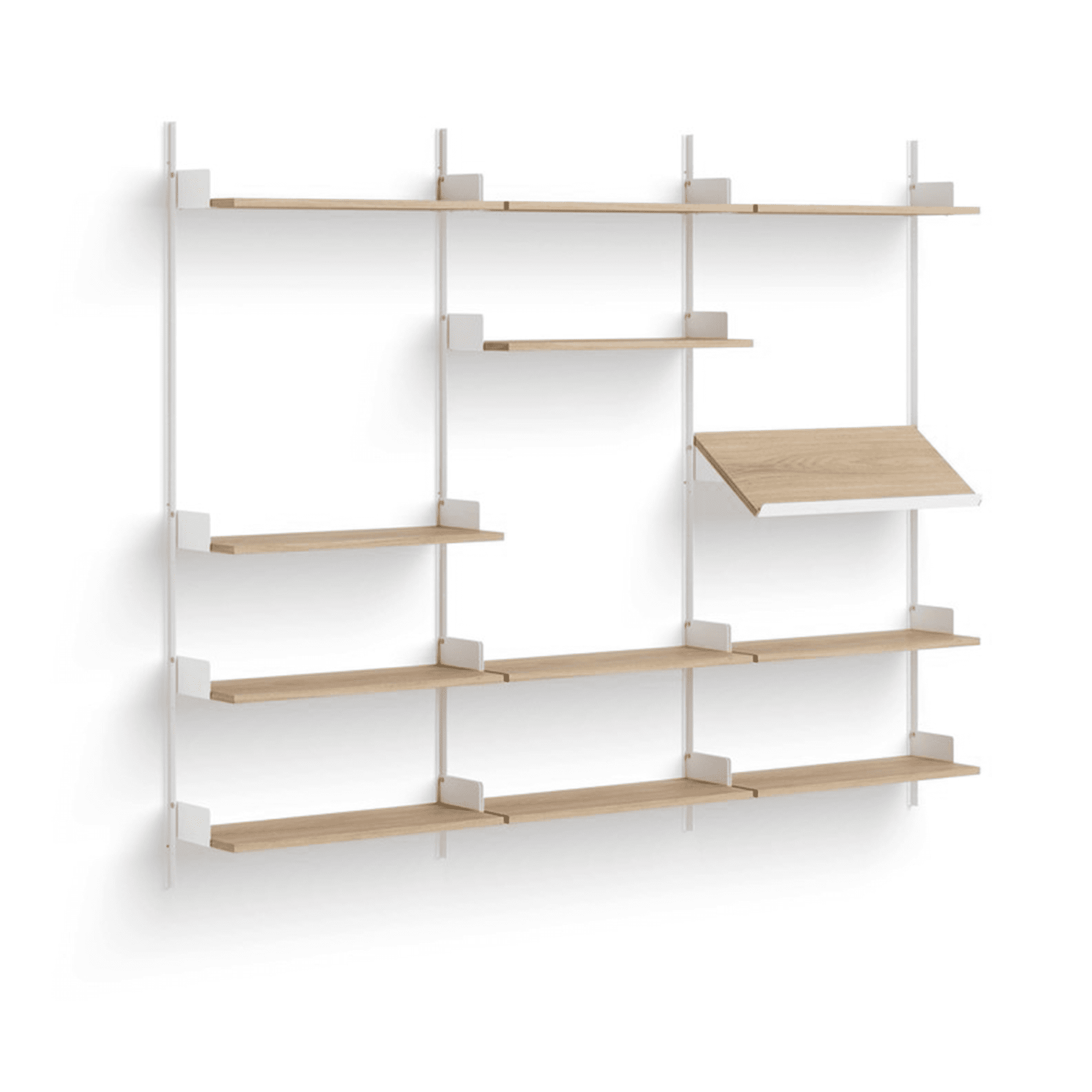Sometimes the simplest pieces prove to be the most difficult to find, say, the quintessential wall shelf. With unDerstated Details and intelligible flexibility, the New Works shelving system aims to be just that. Designed to effortlessly blend into a variety of spaces, this simple shelving system continues New Works’ ongoing quest of creating elevated basics. Nothing is surplus and everything has been carefully attenDed to, like the angular profiles of the wall bars and the integrated bookends that keep your belongings in place. The shelves are neatly assembled with flat knurled screws in stainless steel, adding an honest yet refined Detail to the Design. A system that is meant to grow – in your home and in range – to accommodate various storage needs.
