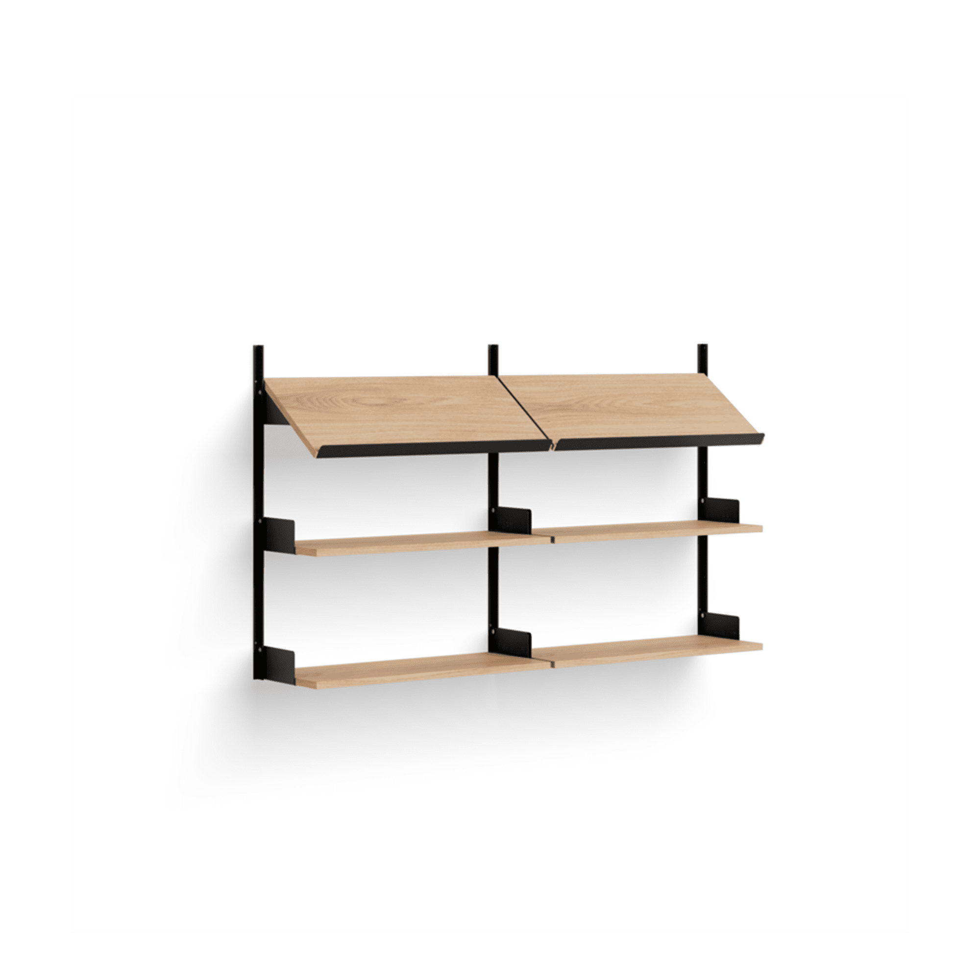 Sometimes the simplest pieces prove to be the most difficult to find, say, the quintessential wall shelf. With unDerstated Details and intelligible flexibility, the New Works shelving system aims to be just that. Designed to effortlessly blend into a variety of spaces, this simple shelving system continues New Works’ ongoing quest of creating elevated basics. Nothing is surplus and everything has been carefully attenDed to, like the angular profiles of the wall bars and the integrated bookends that keep your belongings in place. The shelves are neatly assembled with flat knurled screws in stainless steel, adding an honest yet refined Detail to the Design. A system that is meant to grow – in your home and in range – to accommodate various storage needs.