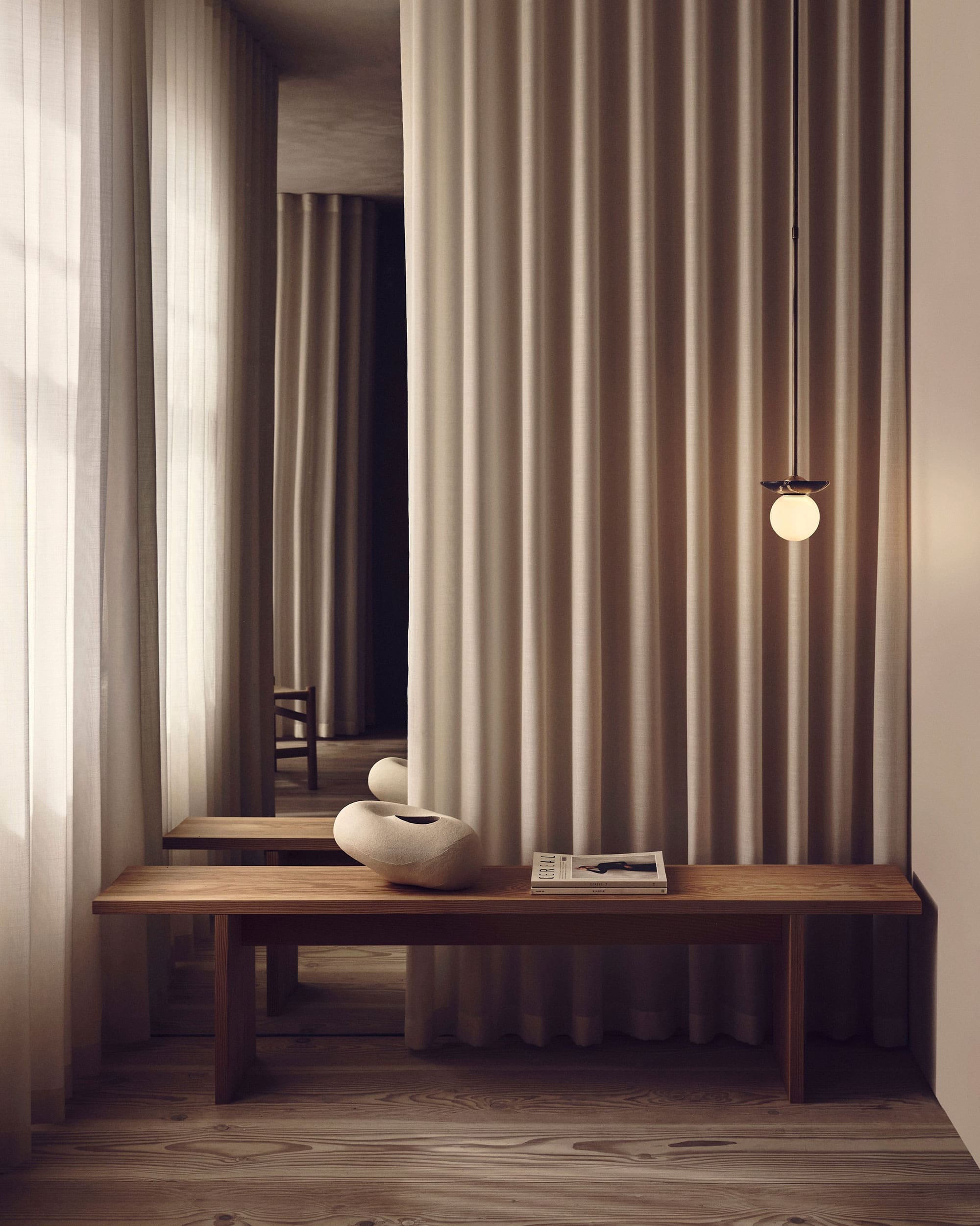 Orbit Pendant masters refined elegance, with its rounded opal shade and natural stone or brass surround—perfect for any space, whether solo or in striking groupings.