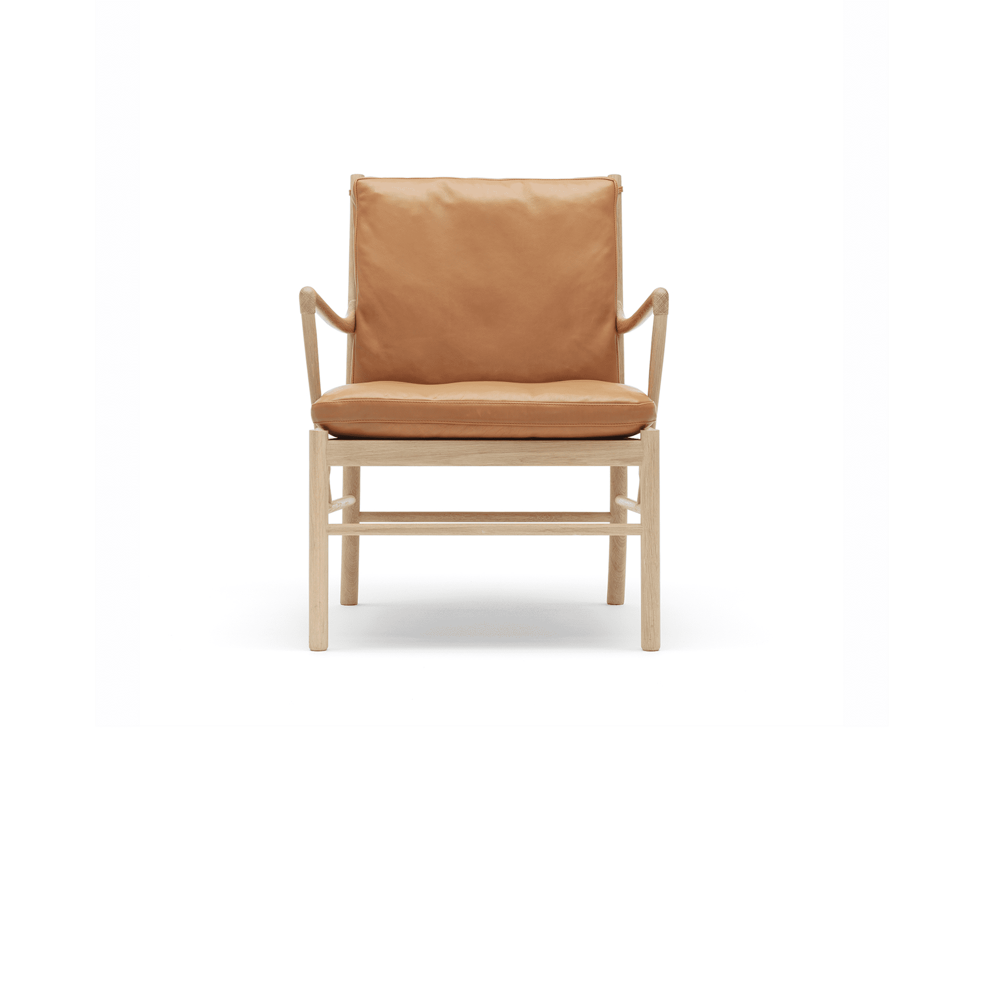 The OW149 Colonial Chair was designed by Ole Wanscher in 1949. Wanscher wished to create furniture that paid tribute to classic conservative trends but also stood the test of time. He achieved this balance with the design of the Colonial Chair, and it remains his most famous design to this day. As a minimalist, Wanscher had a preference for the slim and refined. Yet despite its slender dimensions, the Colonial Chair is very stable. Its strength lying in the carefully designed bracing. The design’s sophisticated, slightly curved armrests rise to a point before taking a turn downward – a trademark Wanscher feature. The front and back legs are made of roundwood timber, with the back legs curving gently outward for added stability and a more refined result. Fifteen years later, Wanscher would design the matching Colonial Sofa and Colonial Coffee Table, creating the Colonial Series. The Colonial Chair is available with the matching OW149F footstool for added comfort.