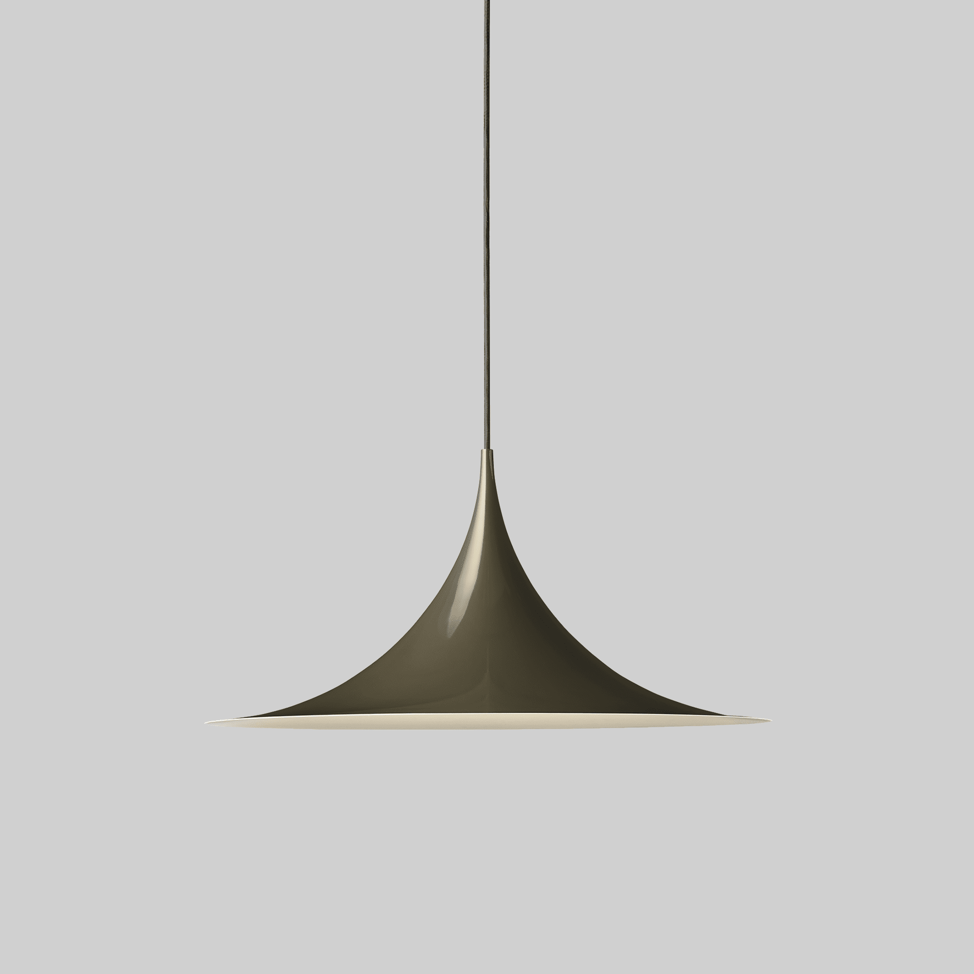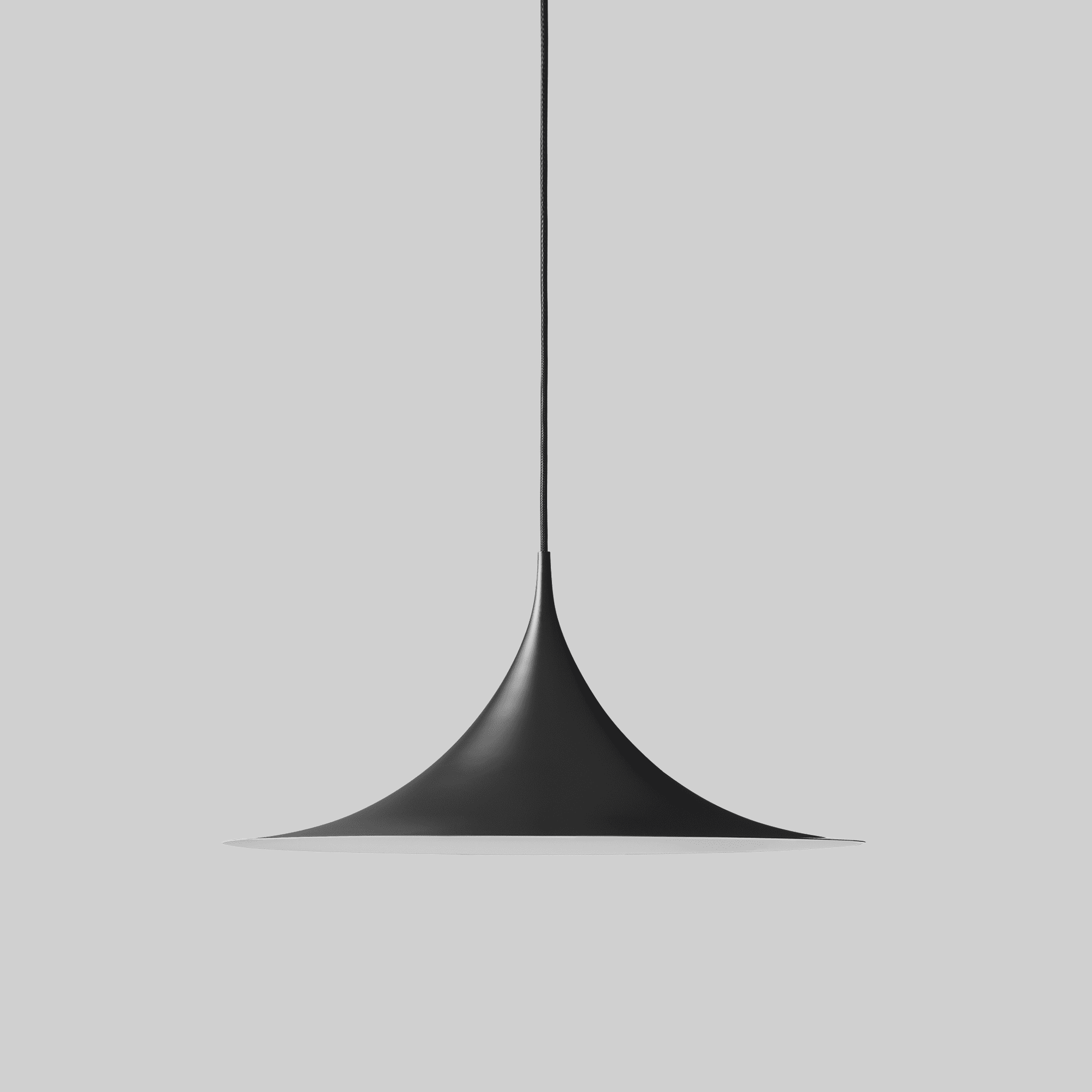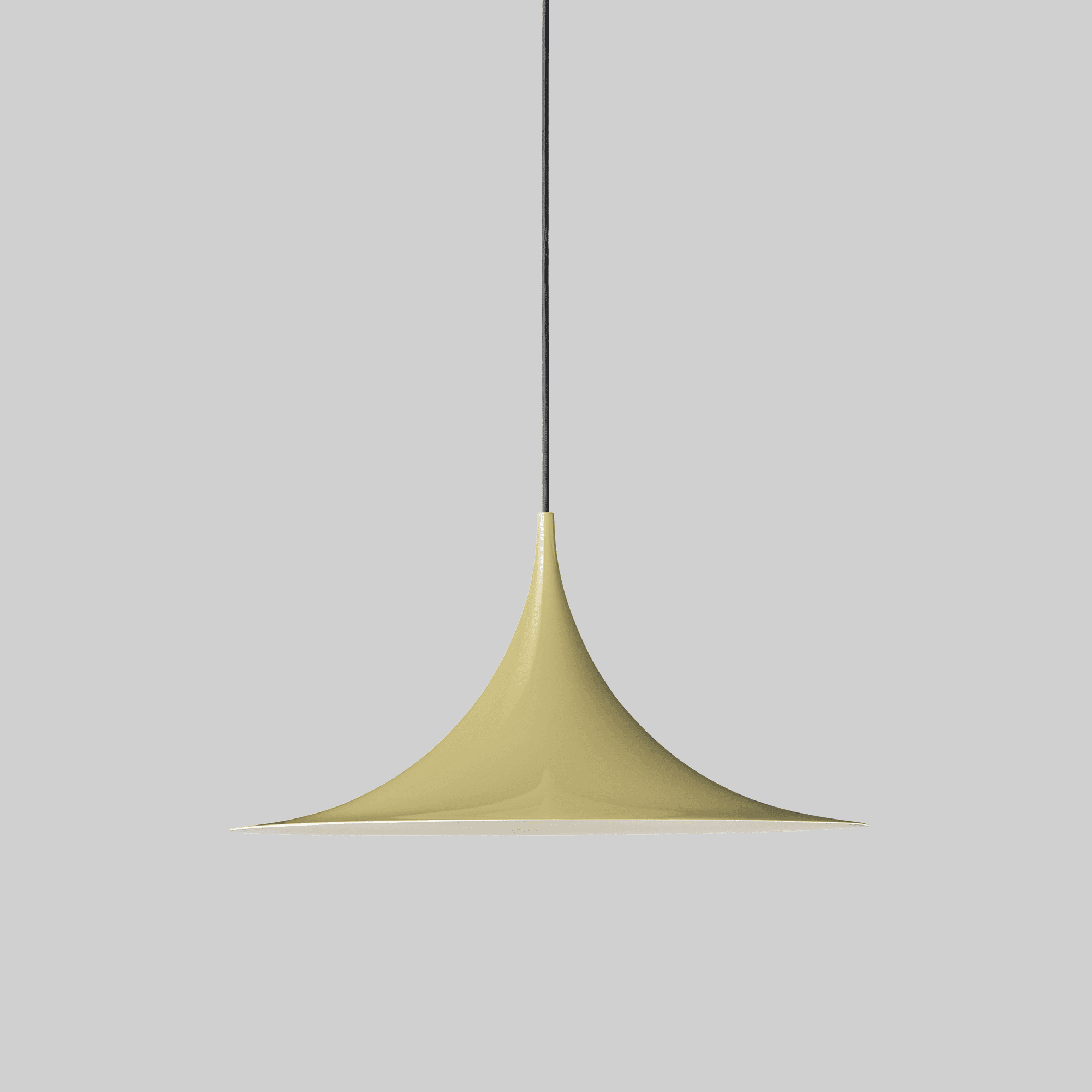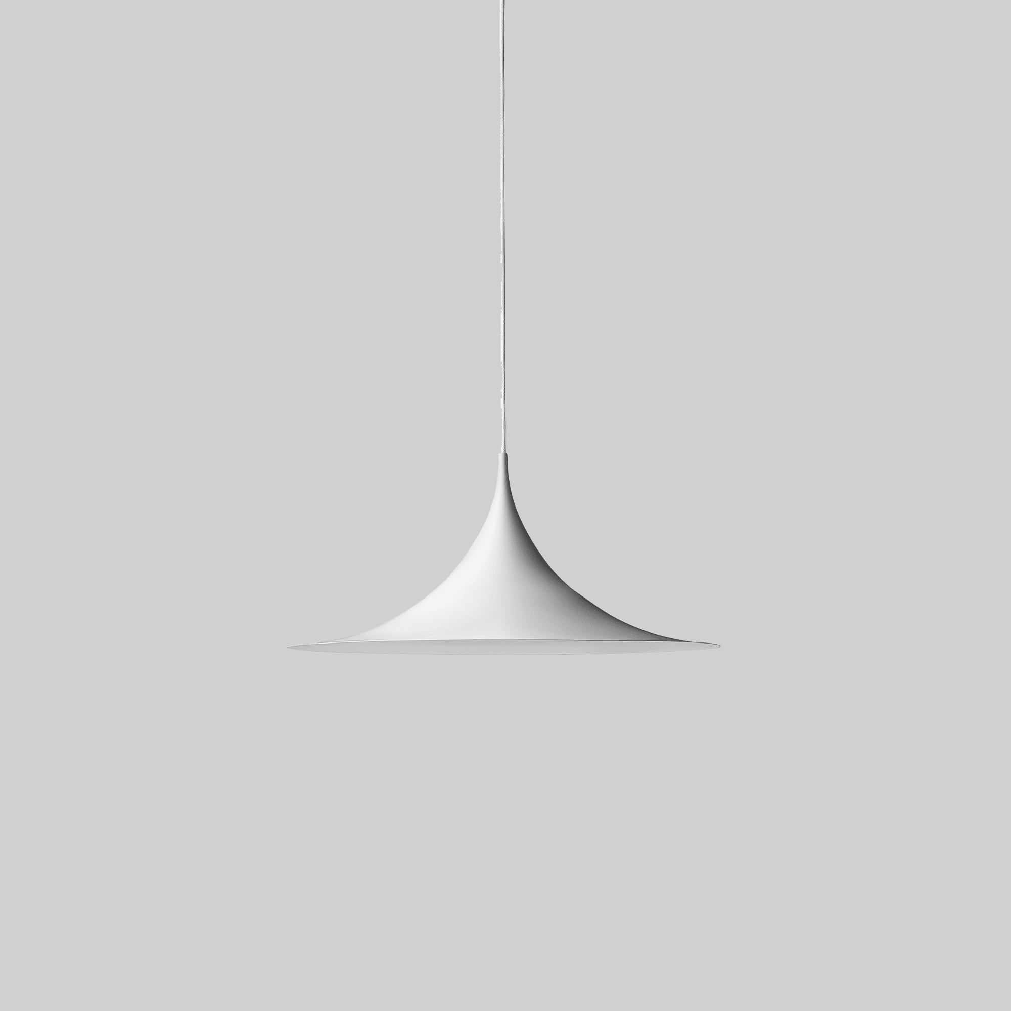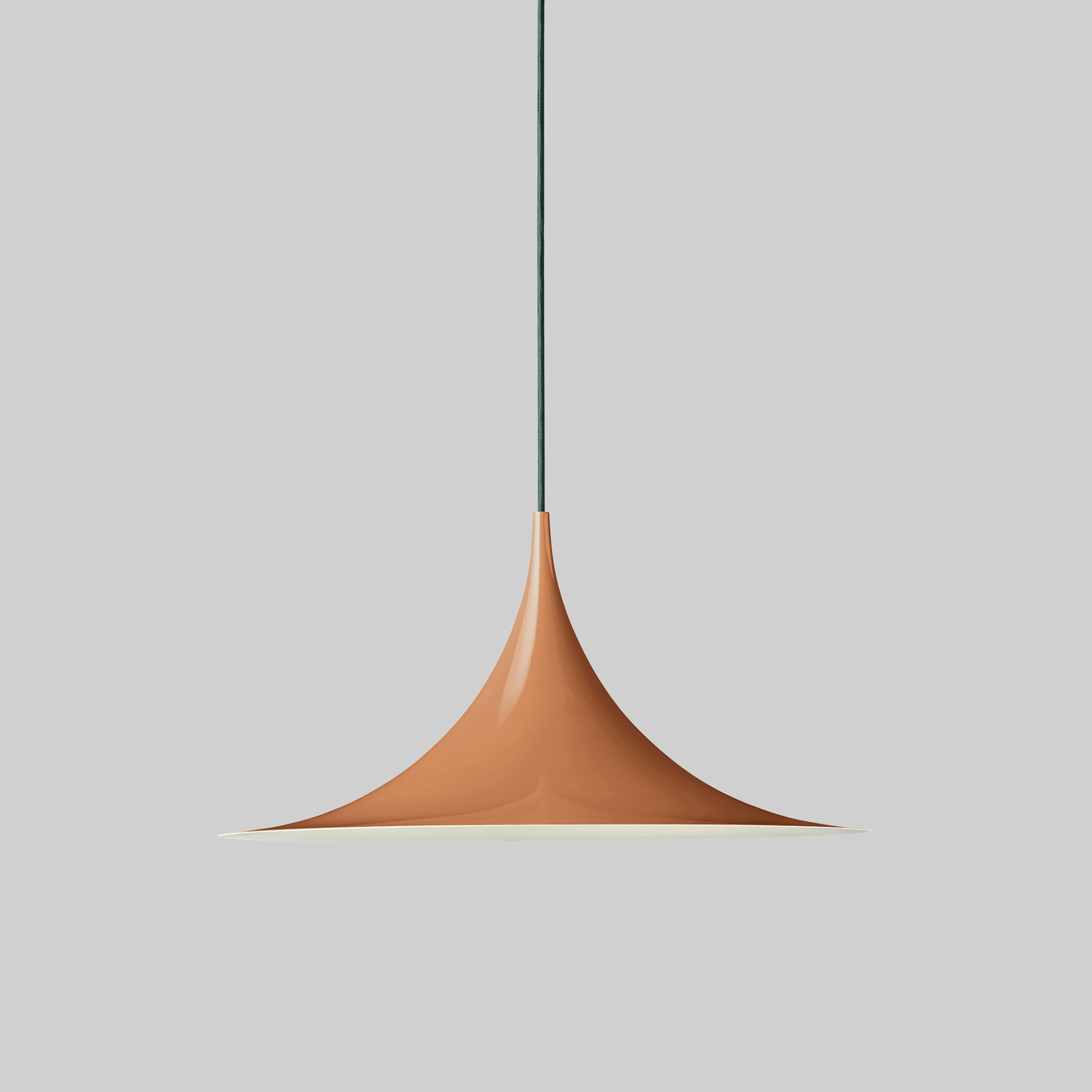 The Semi Pendant is a unique pendant lamp, based on two quarter-circles put together, back-to-back. It’s distinctive arch-shaped, enamelled metal shade creates a diffused, cone-shaped light, ideal over a dining table or kitchen work surface. With its lightness of form, unique timeless design and range of colours and sizes, the Semi Pendant is extremely versatile and well suited to both private and public spaces.The Semi Pendant was designed in 1968 as a product of the creative partnership between Claus Bonderup and Torsten Thorup. Reacting against the soft organic forms, the so-called cosy era, that was dominating Denmark at the time, Bonderup and Thorup wanted to create a lamp that incorporated sharp, clean lines and a geometric shape. Their design was submitted for a competition at the Royal Danish Academy of Fine Arts, School of Architecture and won first prize. In the 1980s the pendant achieved great success and became, at that time, the best-selling Danish design and gained worldwide recognition and iconic status.
