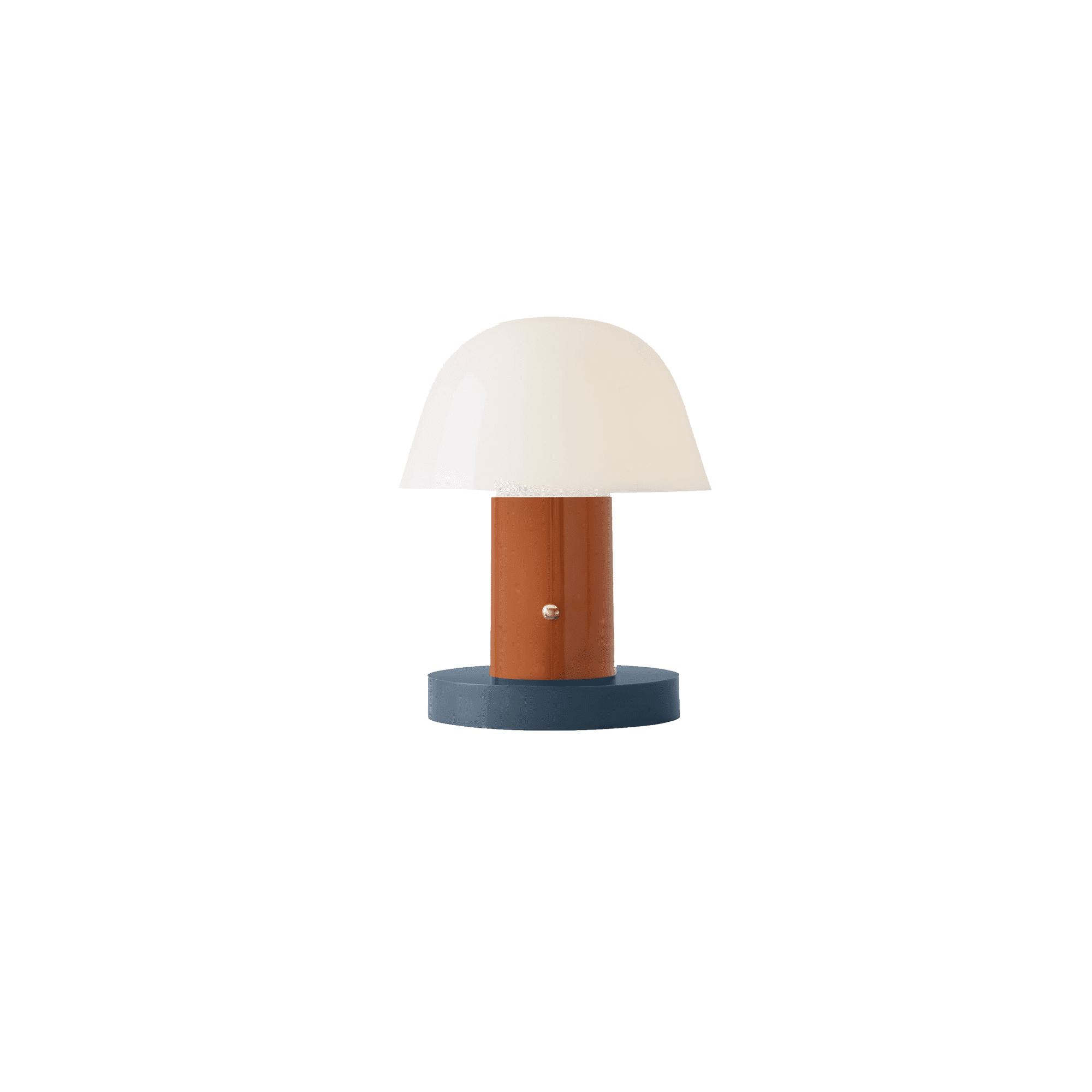 ‘Seta’ the Spanish word for mushroom sets the tone for the diminutive, mushroom-like proportions of this quirky table lamp. But a further clue to its identity is signified by the suffix ‘go’ because this portable lamp unburdened by an electrical cord can literally move anywhere. Additional design features include a discreet gold dimmer and a stylish upward curve on the lamp shade’s brim.