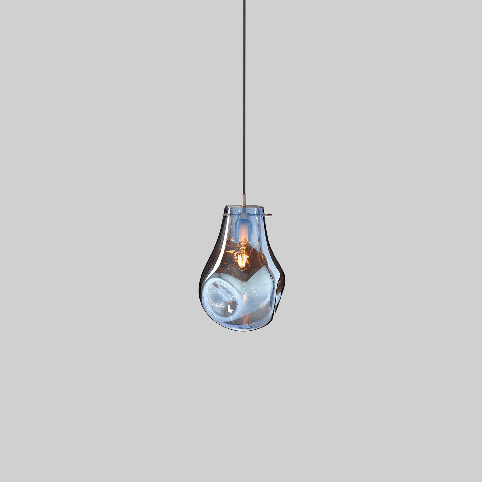 Varying colors, transparency and continuously changing shapes – the characteristic features of soap bubbles, inspired this collection. Lighted, their metallic sheen magically transforms to iridescent and translucent. Each piece is hand-blown without a mold, producing an original in both shape and color.