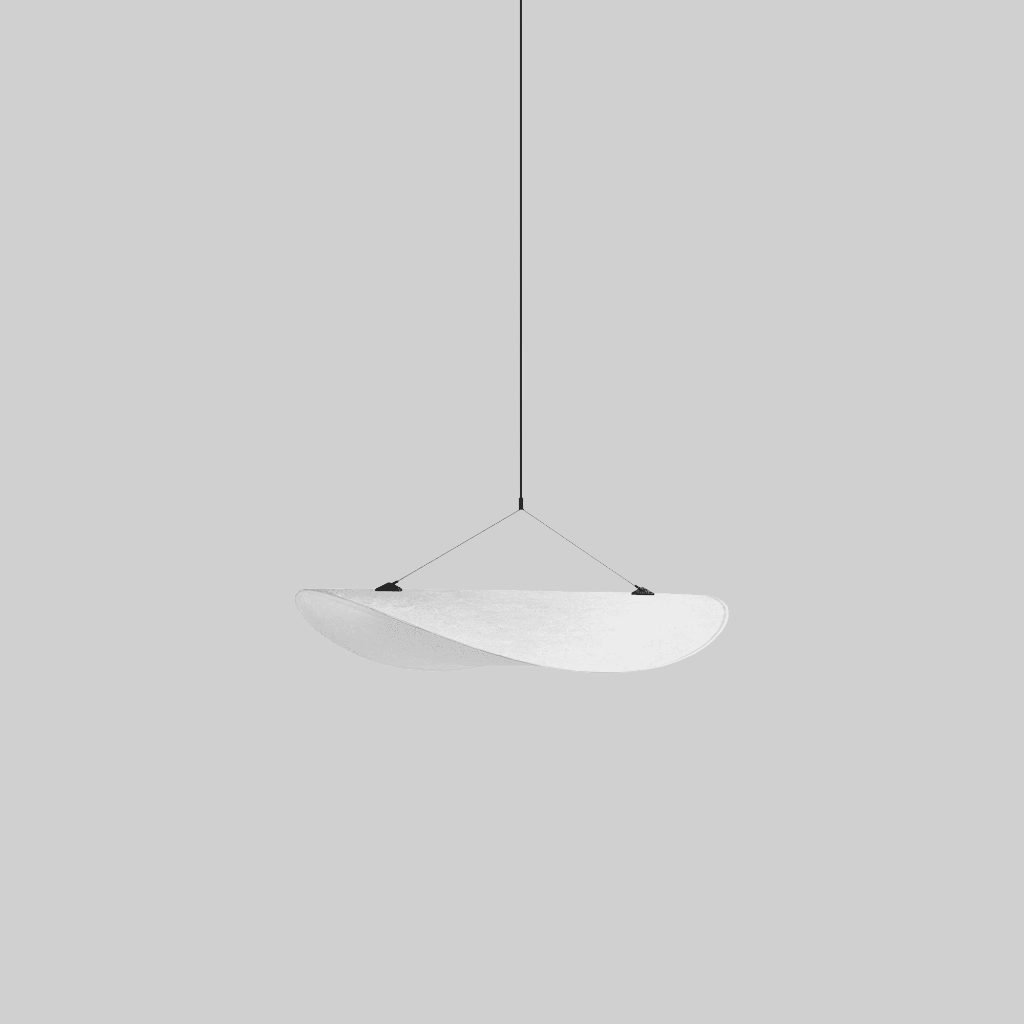 As a small soft cloud, the Tense Pendant in a 55 cm size floats into new usage situations; over the kitchen island, in the dark corner, in the hallway, or wherever the silhouette of a smaller pendant will enrich the surroundings. The modern construction, consisting of a soft Tyvek diffuser, presents a material that is both durable and soft – and at the same time 100% recyclable. The flexibility of the paper-thin diffuser allows the slender frame to highlight the cloud-like qualities of the Tense Family. The lamp is designed with a slim LED light source, and all components are packed in a narrow package, reducing wasted space during transport.
