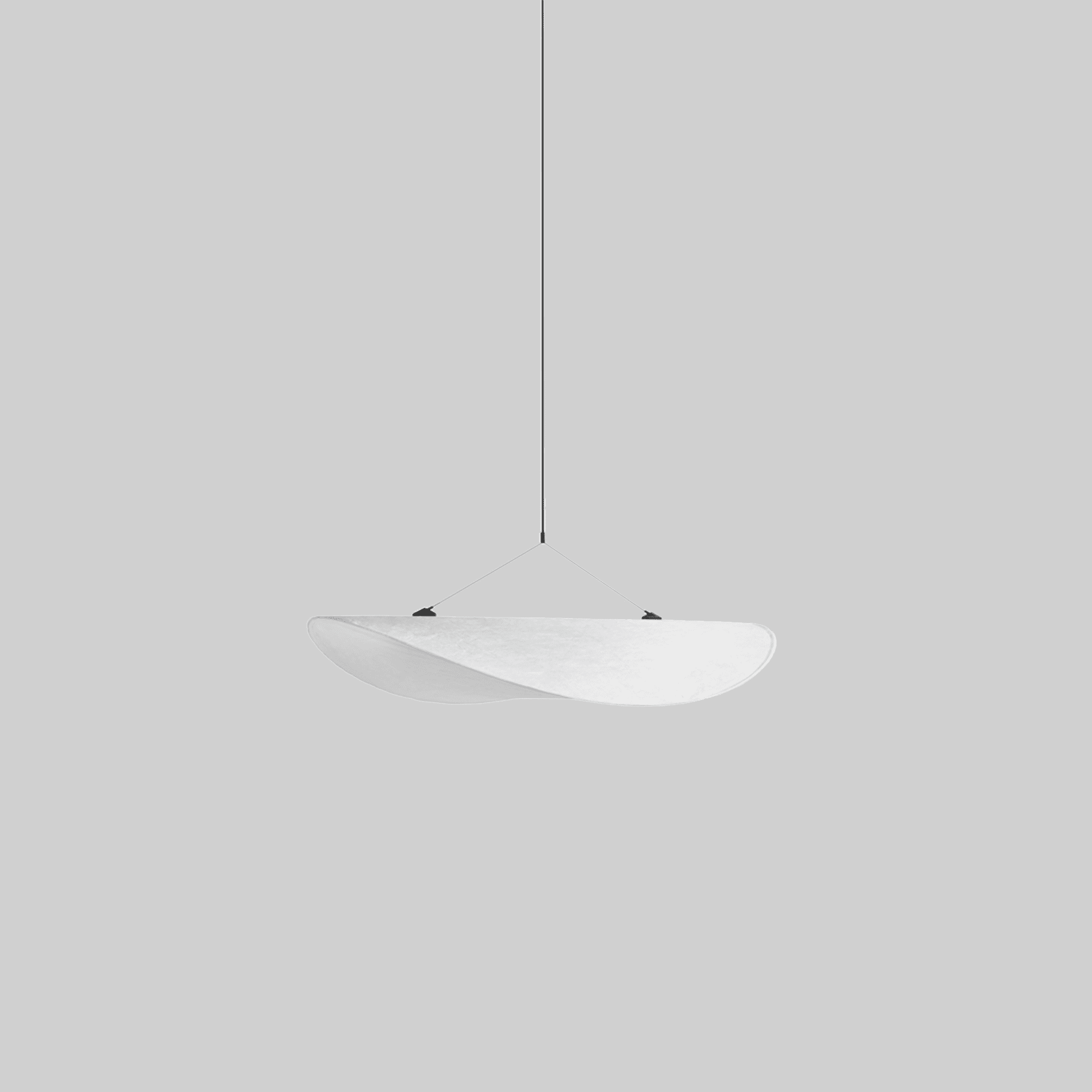 Stretching to over one metre in length, the Tense pendant lamp appears like a soft cloud has floated in. A truly modern construction, its soft Tyvek diffuser represents a material both durable and soft – whilst being 100% recyclable. The flexibility of this paper-like diffuser allows its slim frame to accentuate the cloud like qualities of the Tense pendant lamp. Finished with a slimline LED light source, all components fit into a tube for ease of transport. A truly modern approach to lighting.