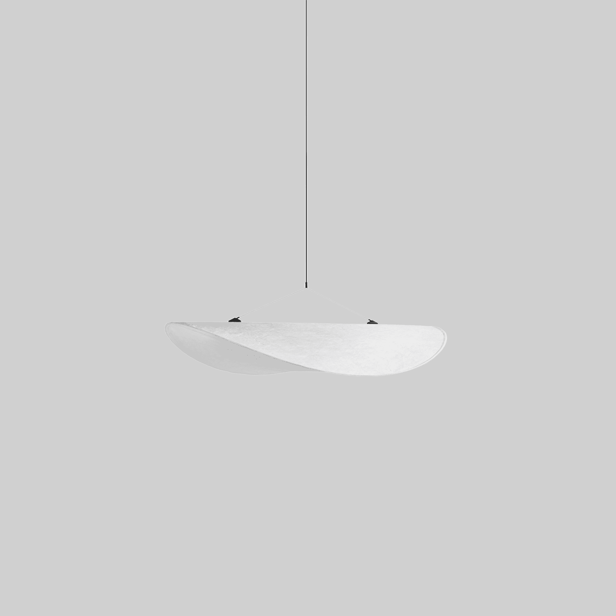 Stretching to over one metre in length, the Tense pendant lamp appears like a soft cloud has floated in. A truly modern construction, its soft Tyvek diffuser represents a material both durable and soft – whilst being 100% recyclable. The flexibility of this paper-like diffuser allows its slim frame to accentuate the cloud like qualities of the Tense pendant lamp. Finished with a slimline LED light source, all components fit into a tube for ease of transport. A truly modern approach to lighting.