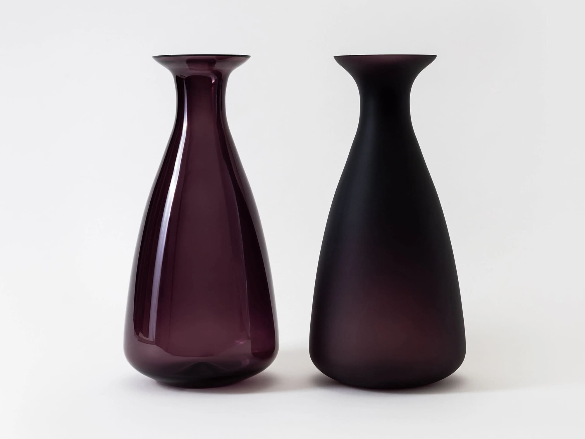 The silhouette of the Trace Decanter is both familiar and mysterious. An eminently functional decanter for your favorite wines. The flared top, finished with a precisely cut and polished edge is just right for smooth, graceful pouring. Available in three vibrant, transparent glass colors, with both frosted and standard finishes. Each piece is individually handblown from the finest glass. Subtle variations in color density are an intentional expression of its handmade origins.
