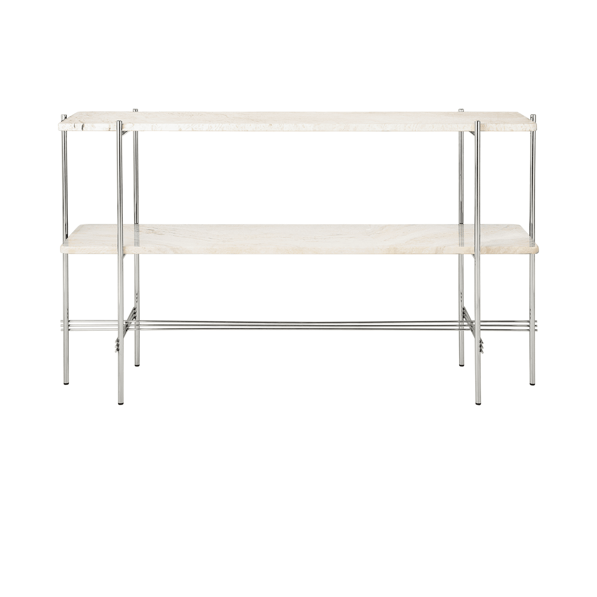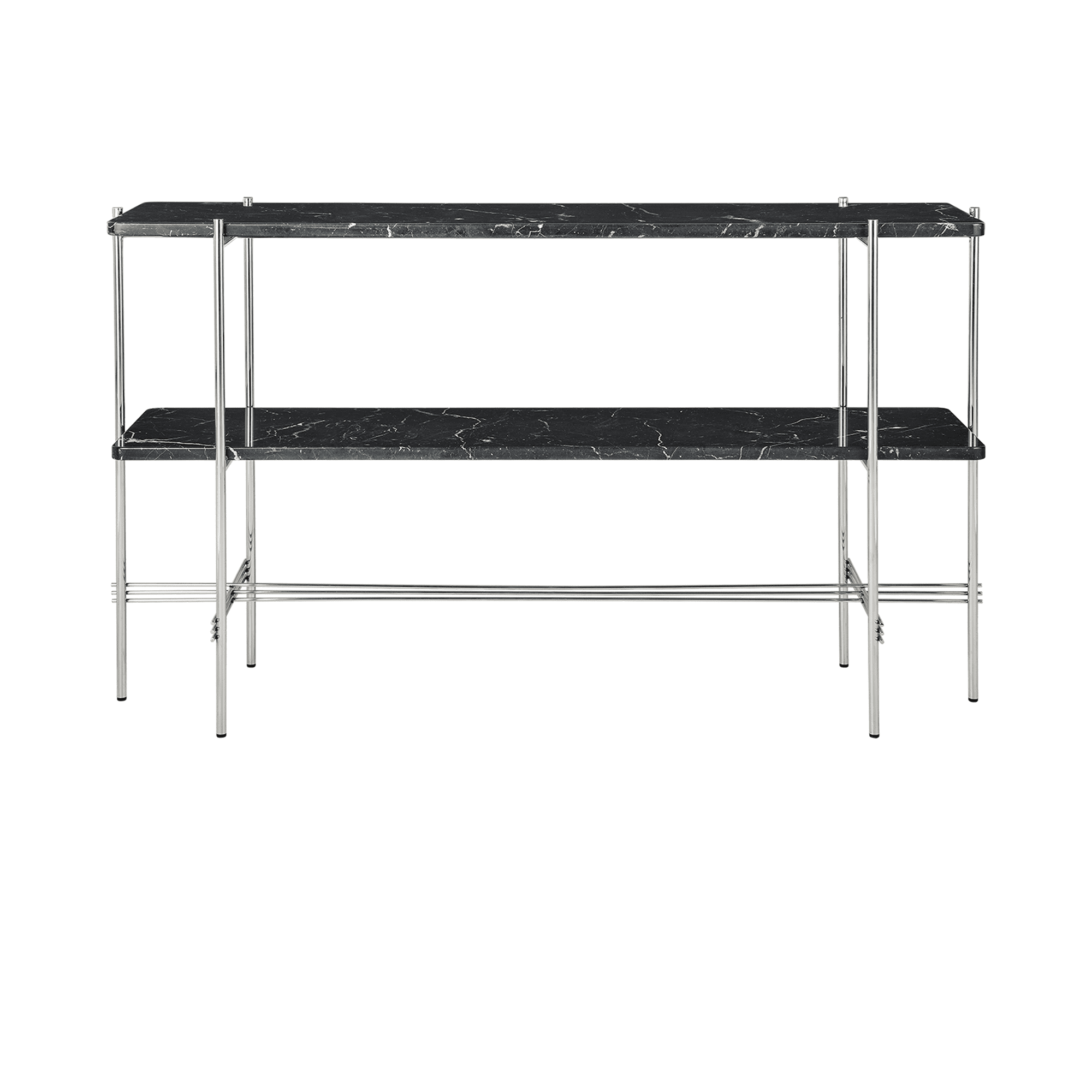 The TS Console creates a sophisticated and sculptural aesthetics for any room with its characteristic slender legs, beautifully crossing details and contrasting solid table top. The rectangular console serves equally well as a storage unit, serving station or media console, featuring either one or two table tops.The timeless TS Console by GamFratesi is extended from the classic TS Table, made for the renowned restaurant The Standard in Copenhagen, where not only its name got its inspiration but also aesthetics and material choices were found.