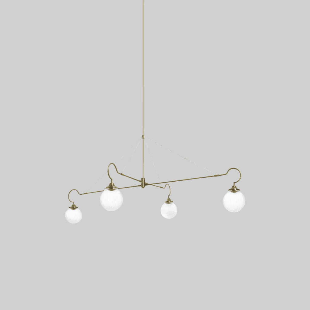 FLOREN PENDANT 4 ARM antique brass and ribbed glass, 205x135cm