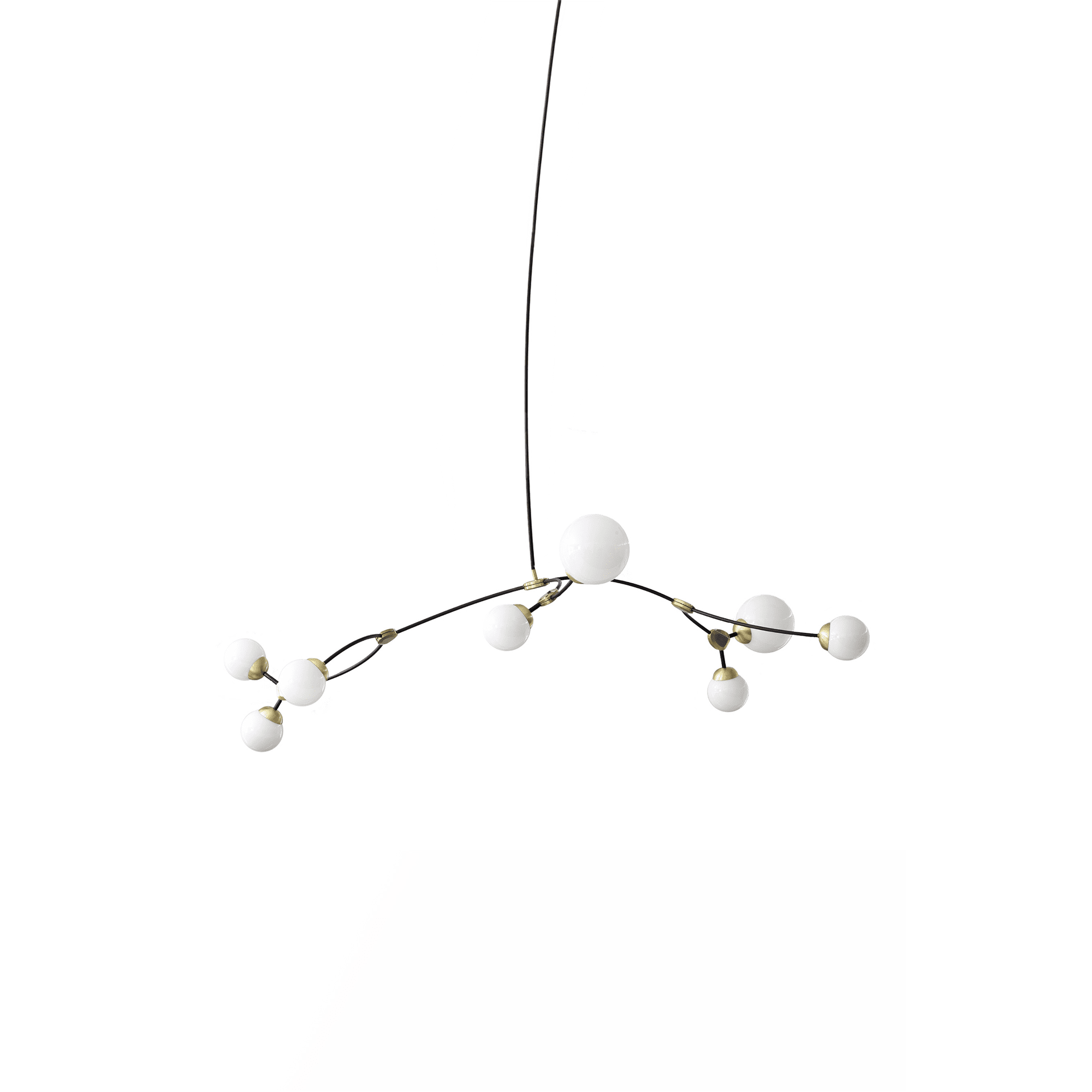 IVY PENDANT 8 with satin brass details and shiny opal glass, 180x100cm